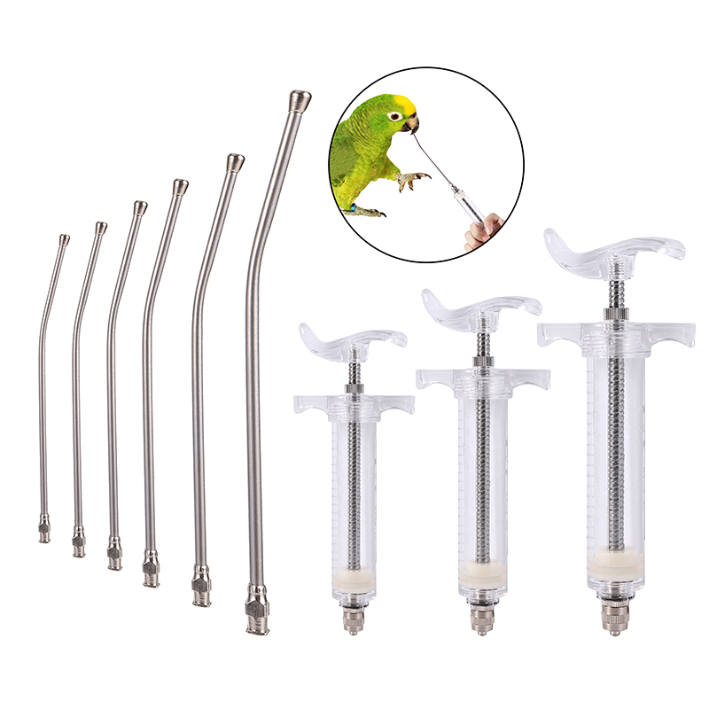 Bird Handfeeding Syringe with Stainless Steel Feeding Gavage Tubes Feeder for Parrot Lovebirds