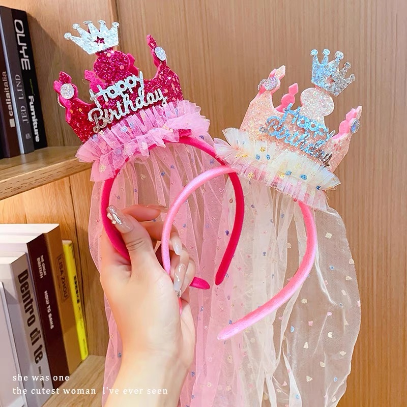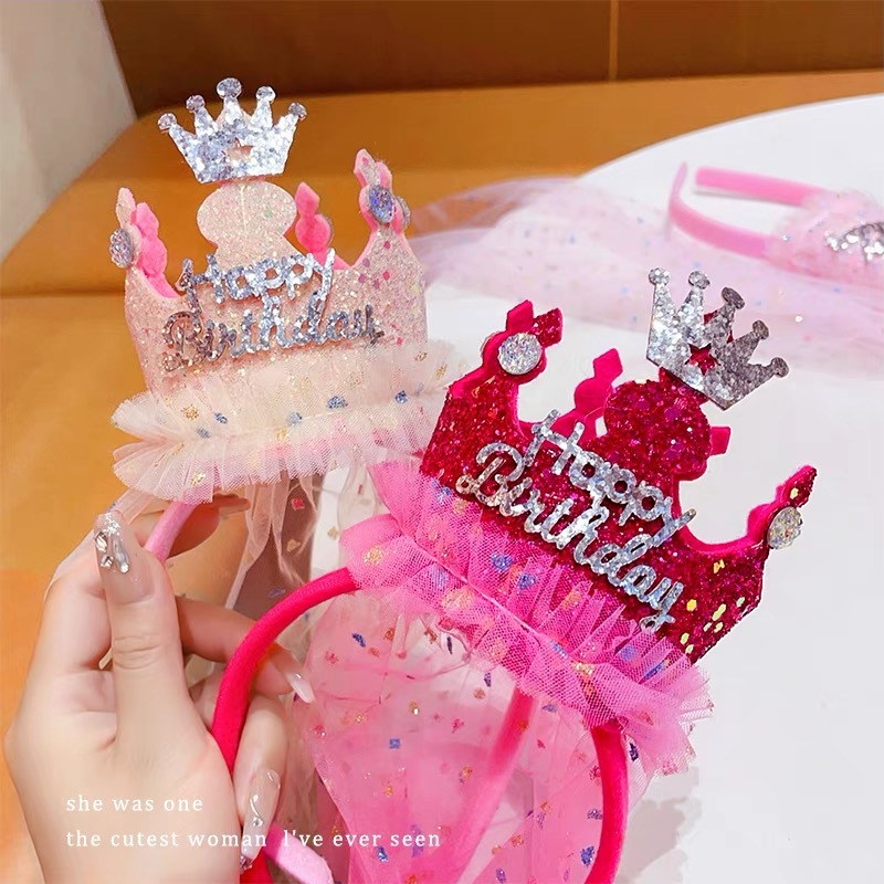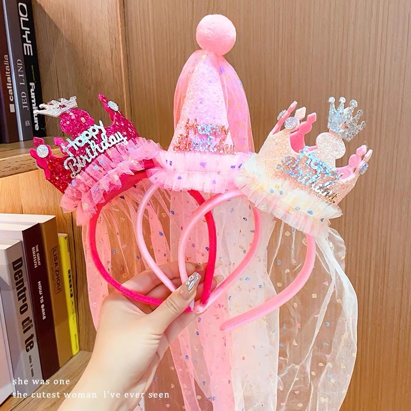 Birthday Hat Girl Happy Birthday Cute Decoration Party Cap Ins Non-woven Headband Hat Party Photo Pr
