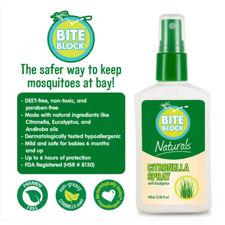 Bite Block Naturals Insect Repellent Citronella Spray 100mL. DEET-free, all natural and non-toxic