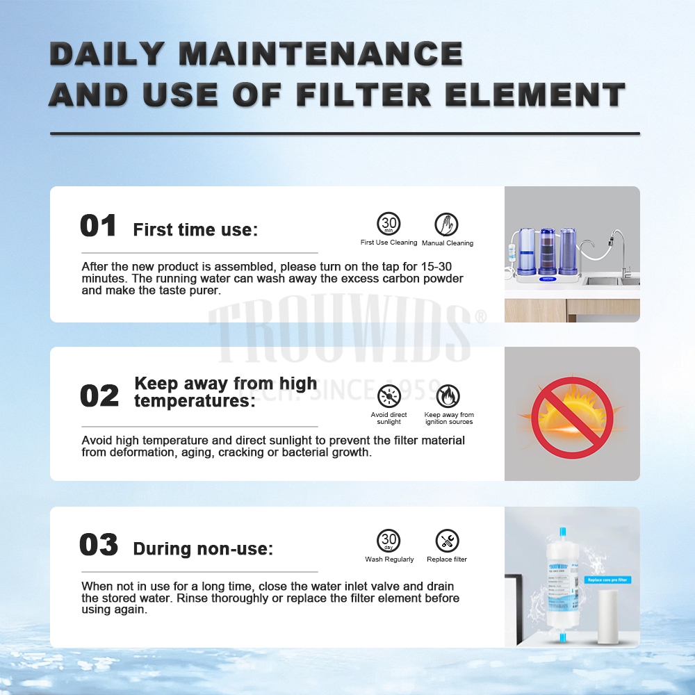 TROUWIDS Water Purifier Filter Pre Filter Cartridge Household Replacement Filter Element