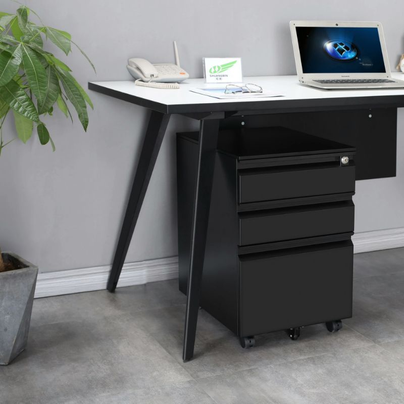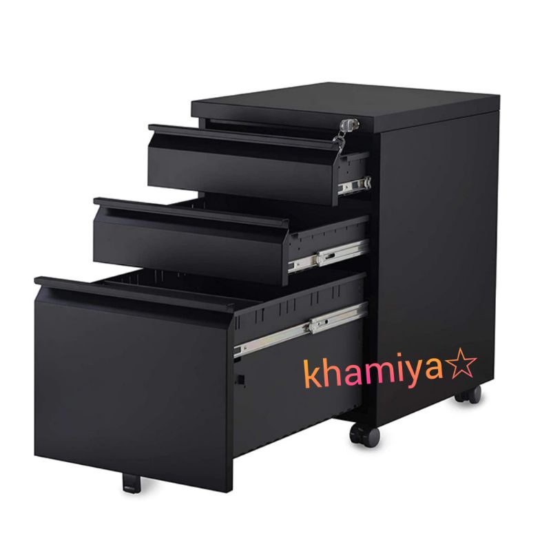Black 3 Drawer File Cabinet, Mobile Pedestal Steel Cabinet, Office Filing, Drawer Under Table