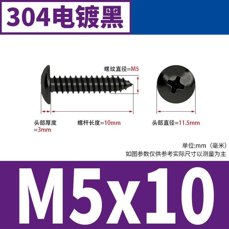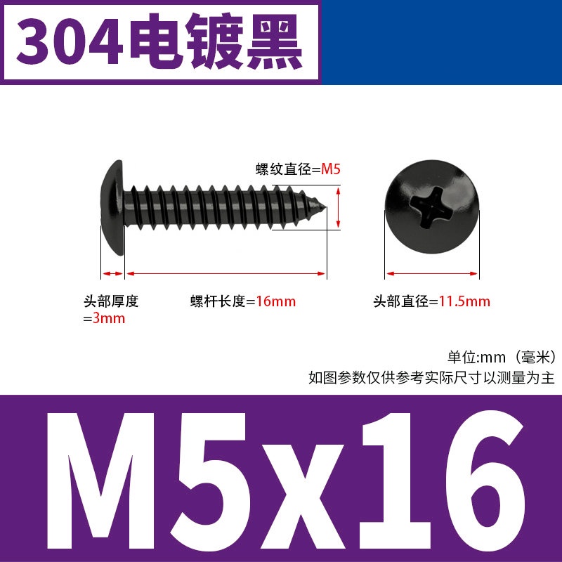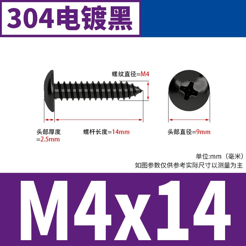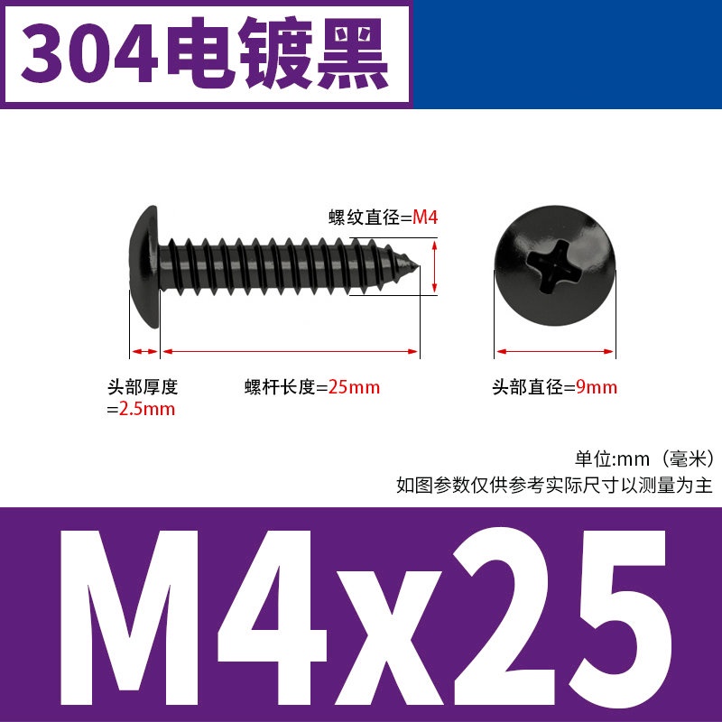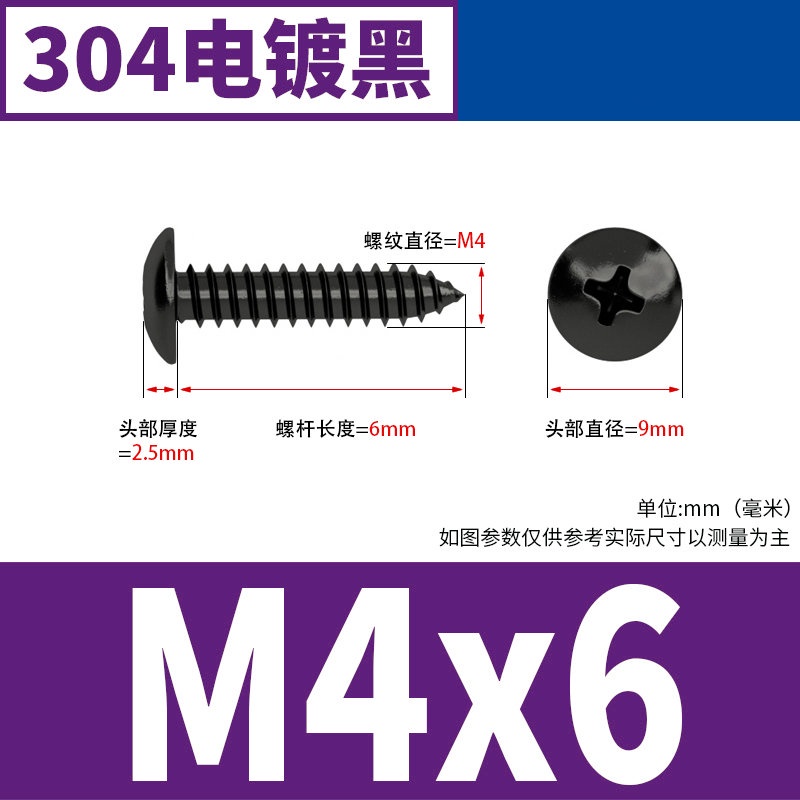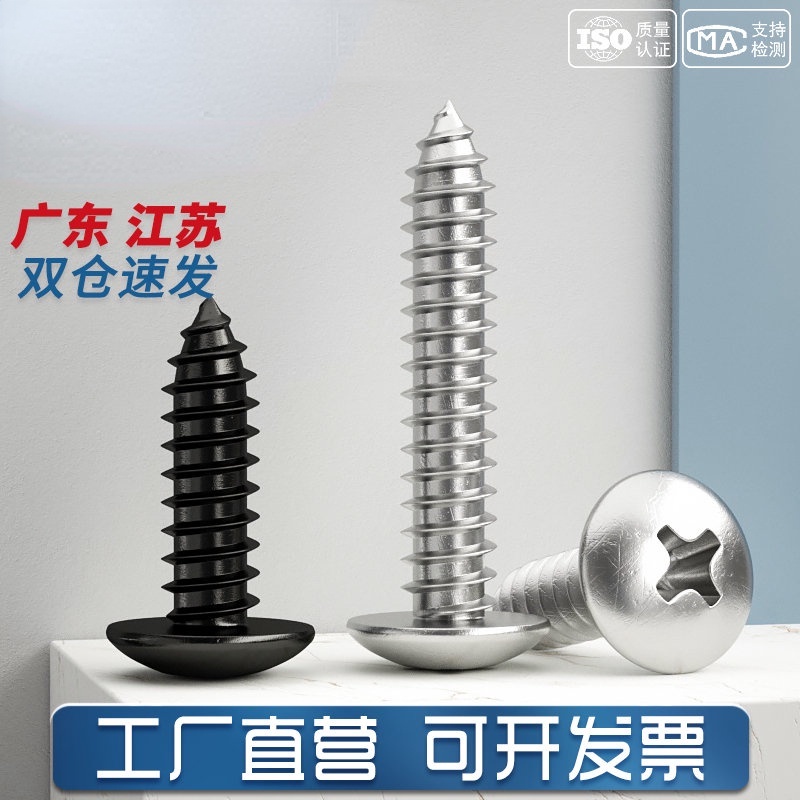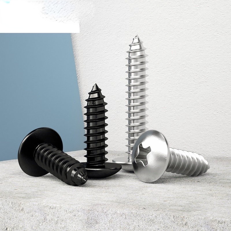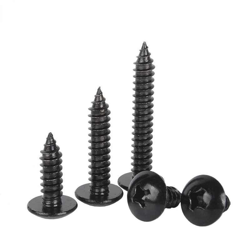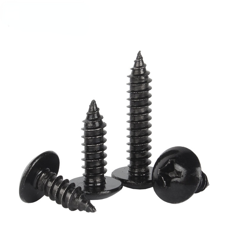 Black 304 Stainless Steel Large Flat Head Self-Tapping Screw M3-M4-M6 Umbrella Head Round Head Phillips Self-Tapping Screw