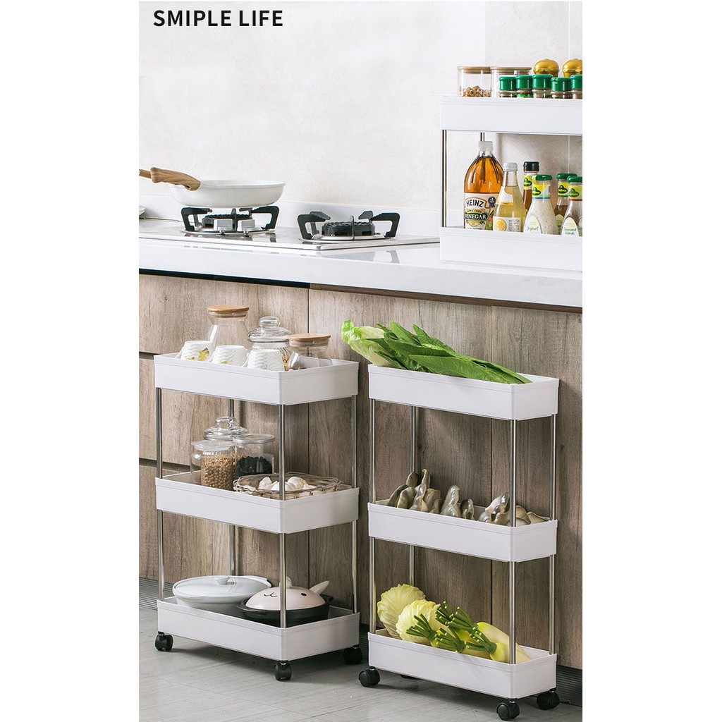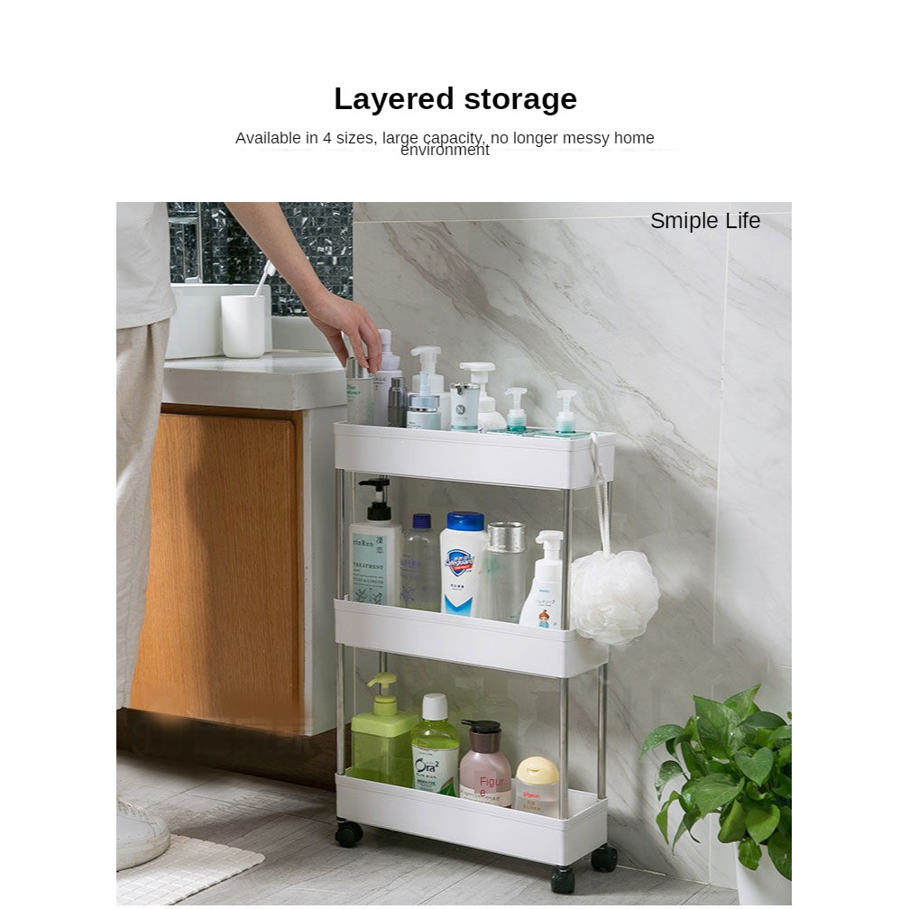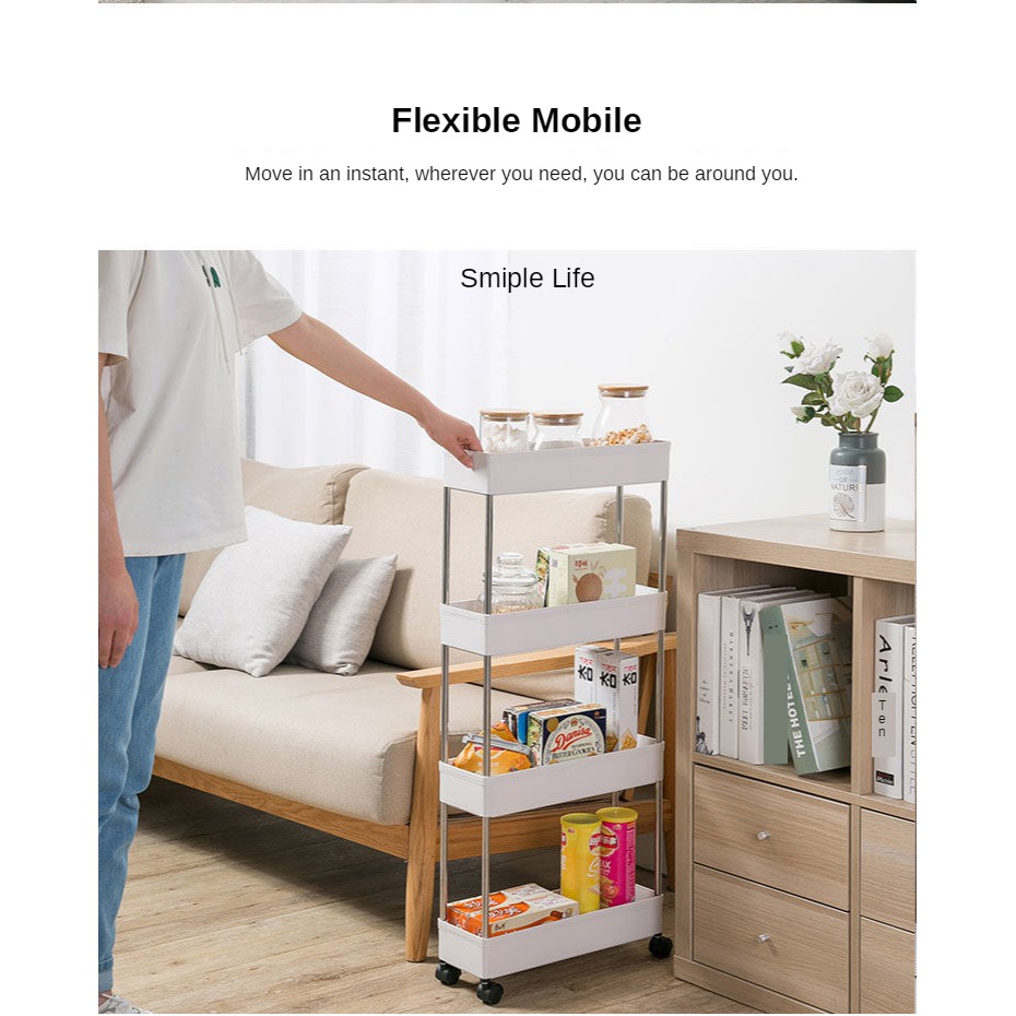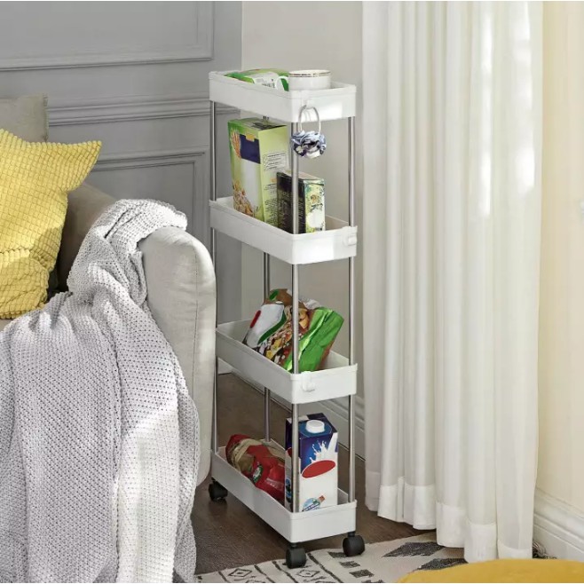 Black 4 Tier Slim Storage Rack Storage Cart Mobile Shelving Unit Organizer Gap Storage Slim Slide