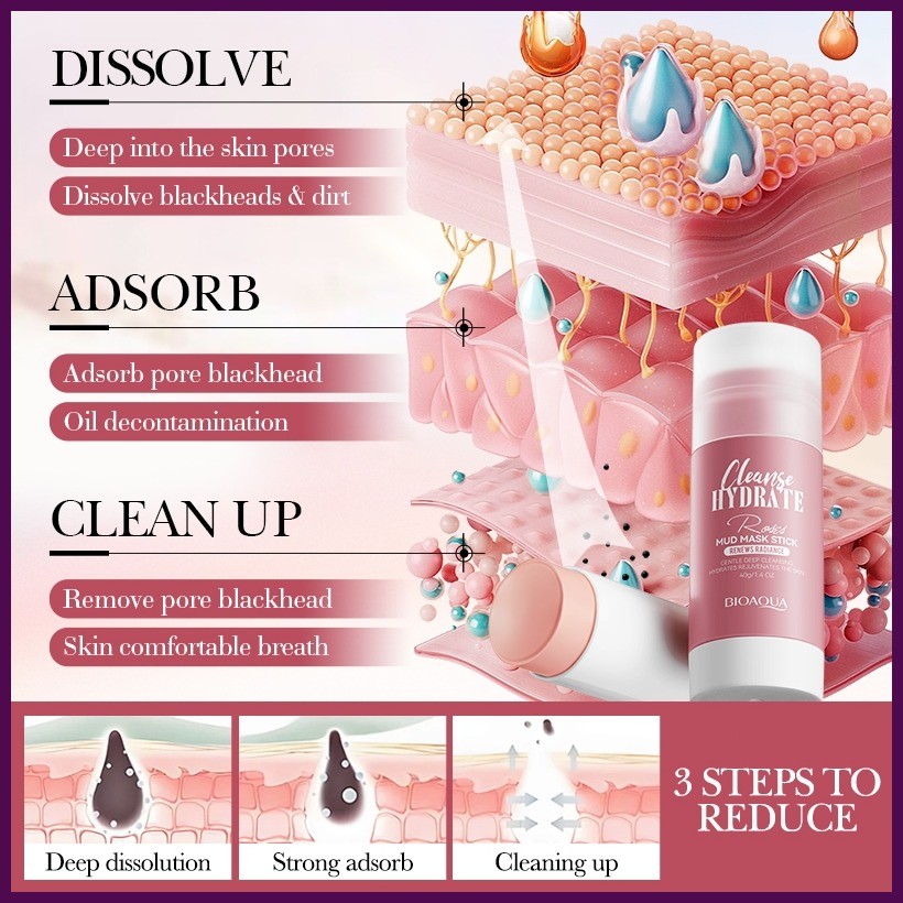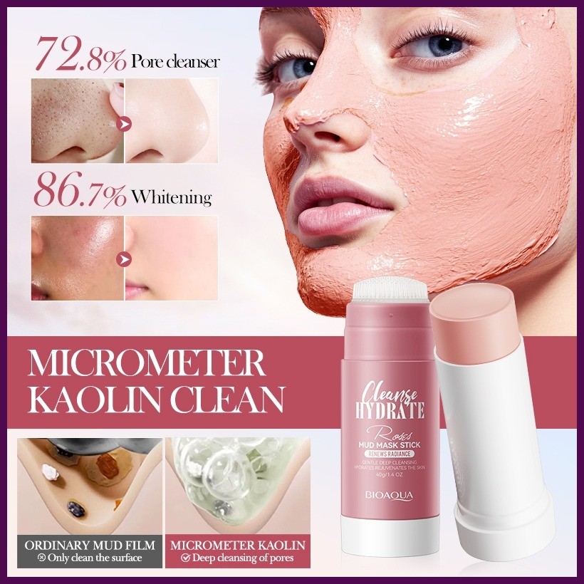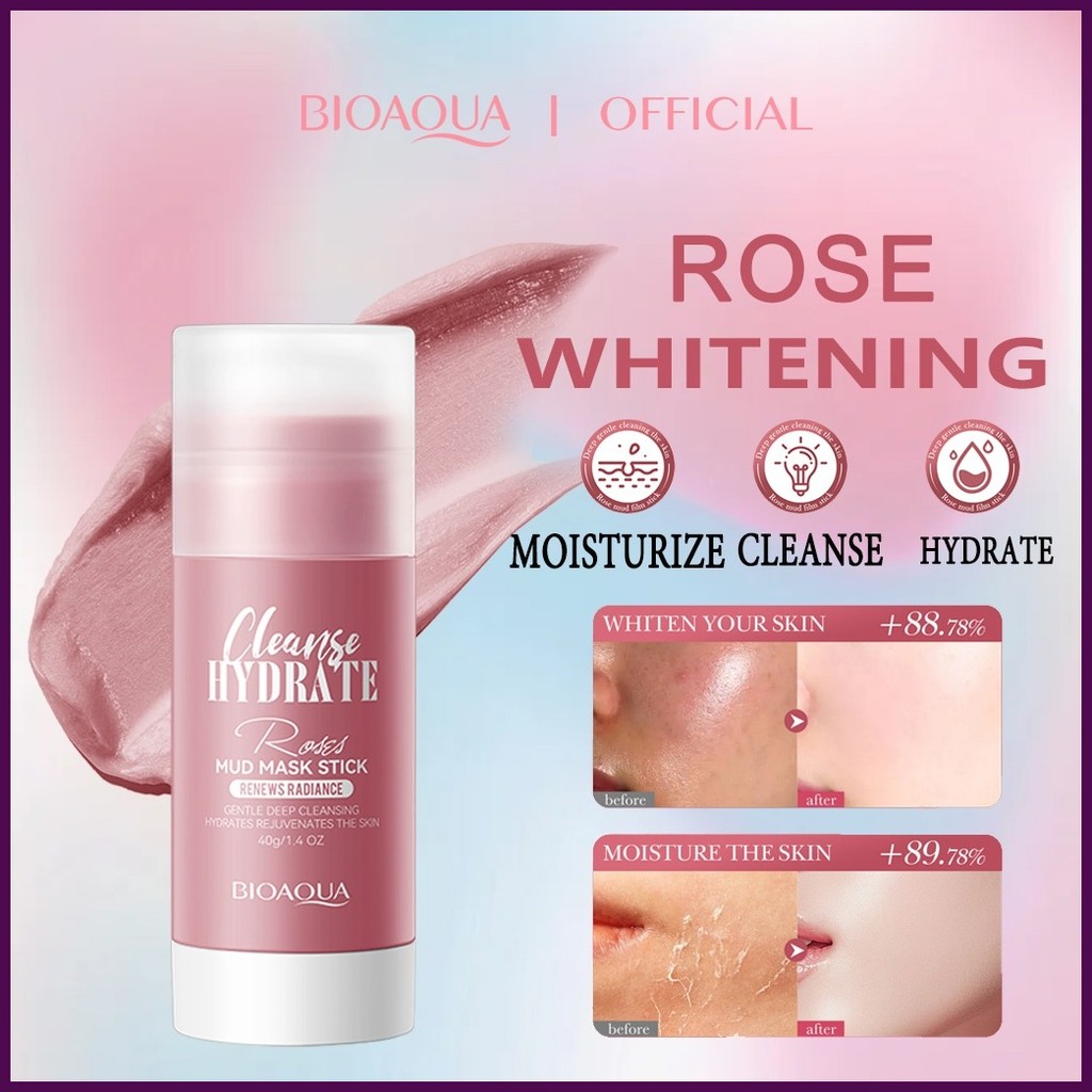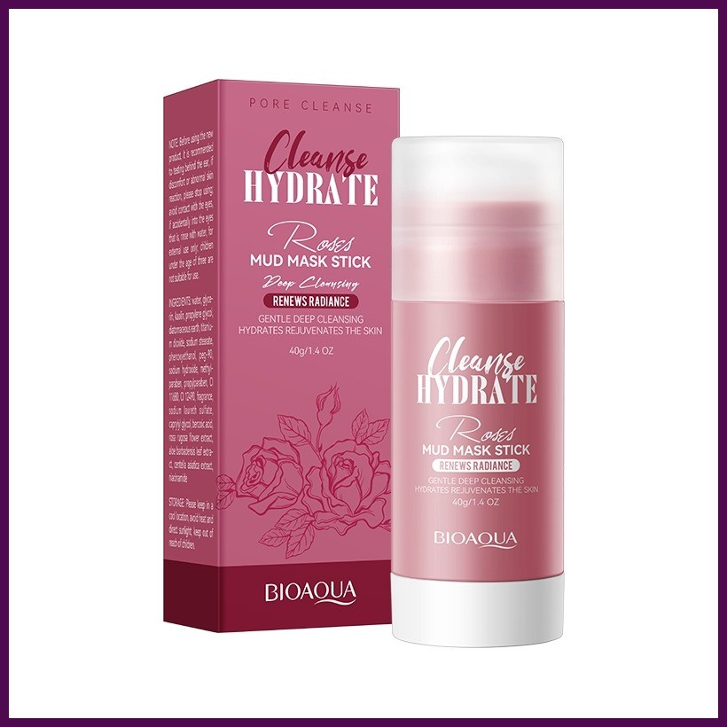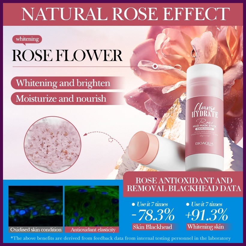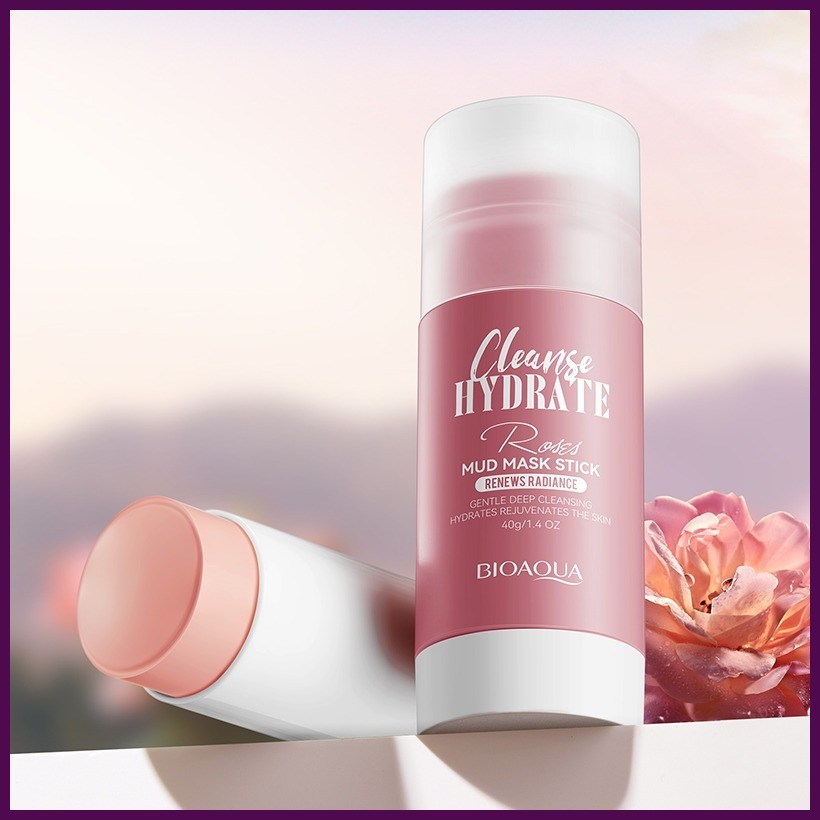 ∡ ◮ ☸ BIOAOUA Rose Hydrating Cleansing Mud Mask Stick Skin Care Face Mask 40G