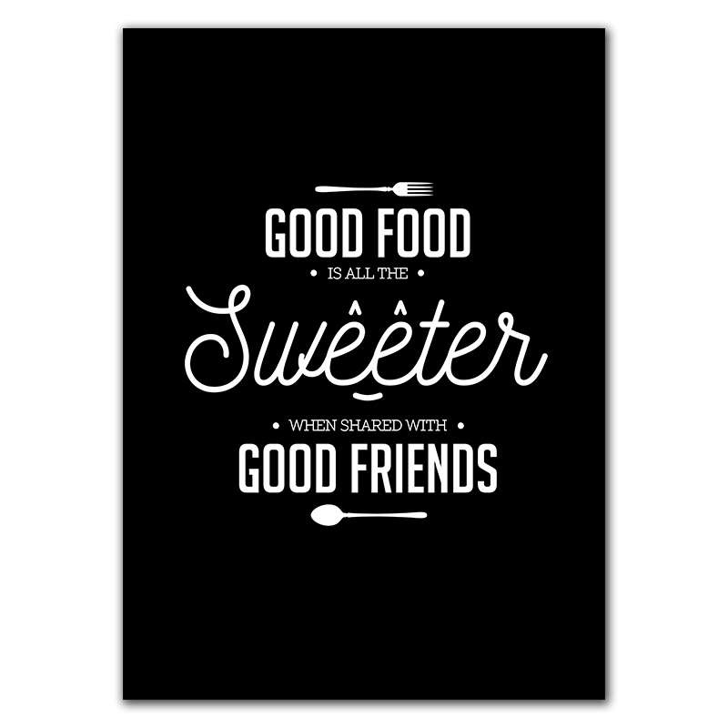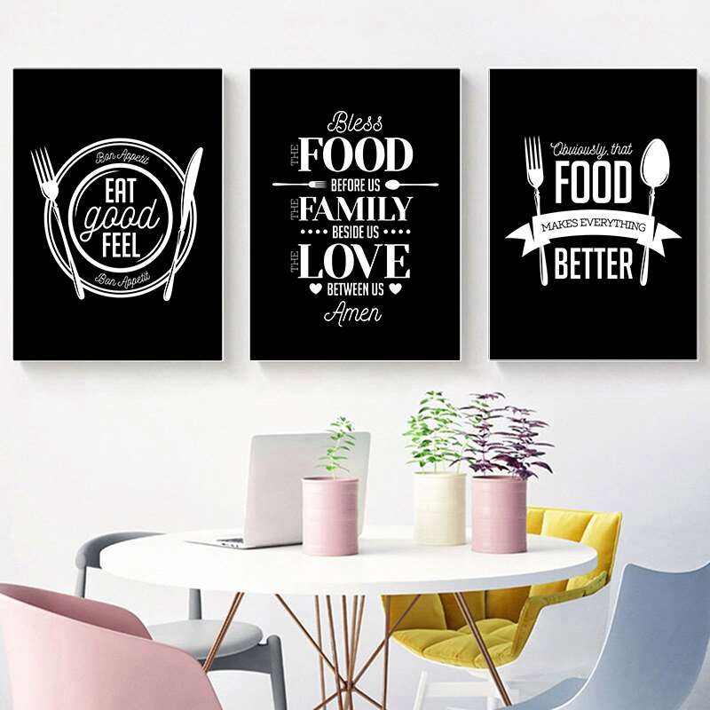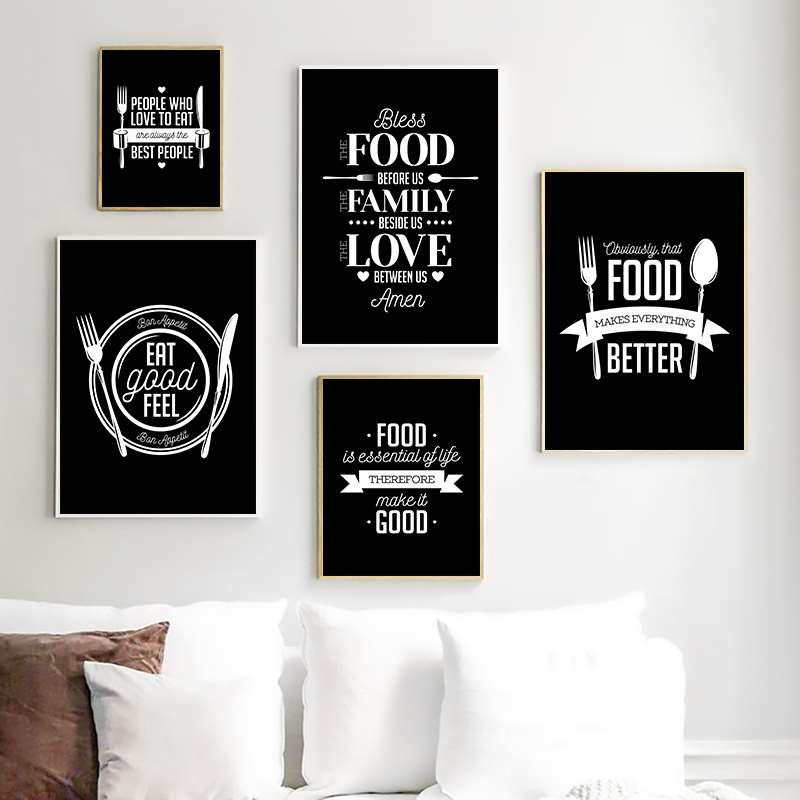 Black And White Food Quotes Canvas Painting Prints Tableware Wall Art Posters Wall Pictures Dining Room Bedroom Modern Aisle Home DecorNo Frame
