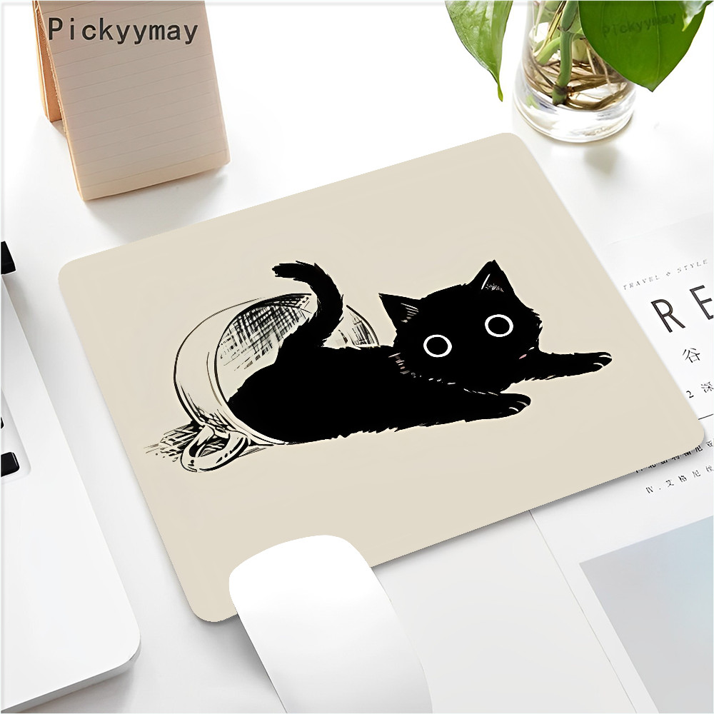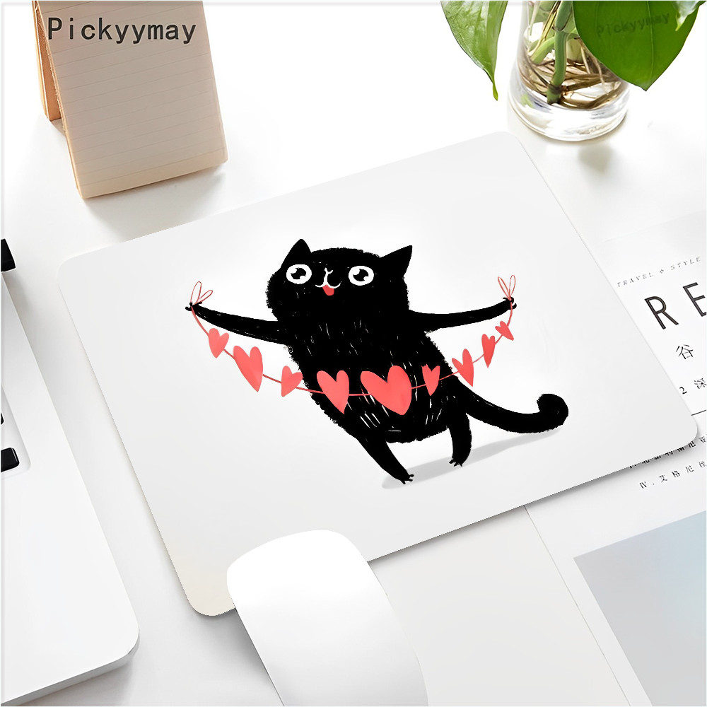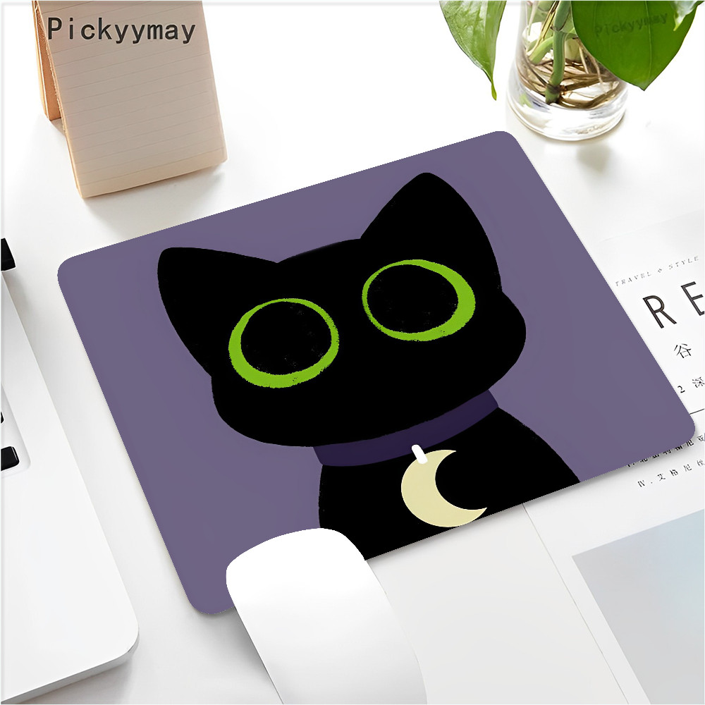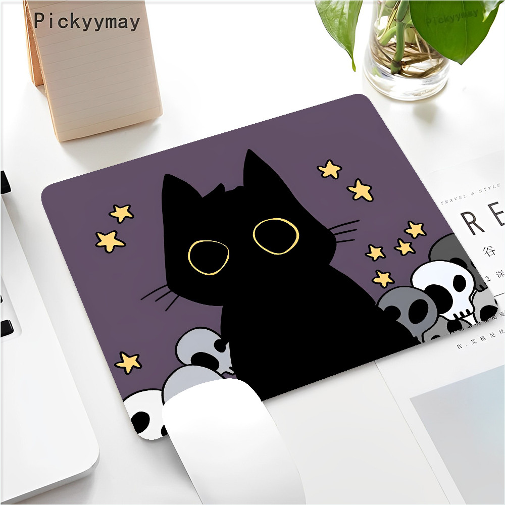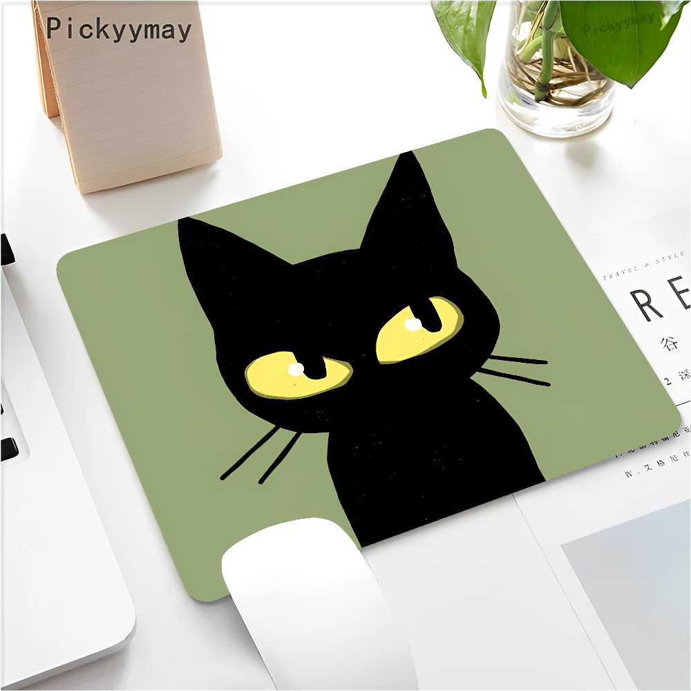 Black Cat Mouse Pad Small Office Computer Desk Mat Table Keyboard 22x18cm Mouse Pad Laptop Cushion Non-slip Desk Mat