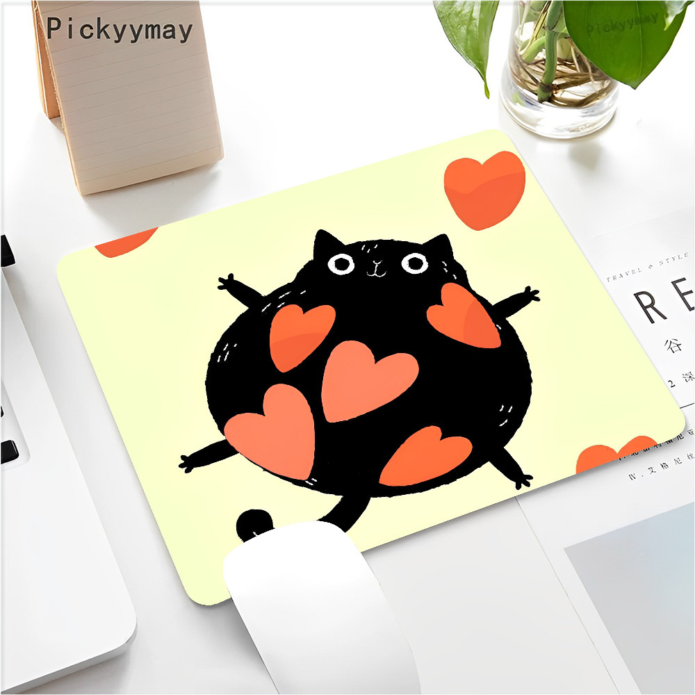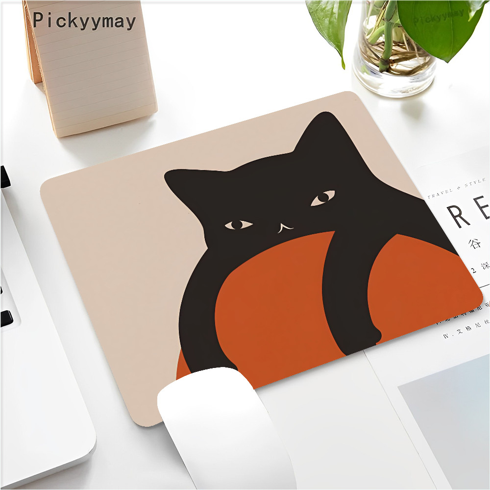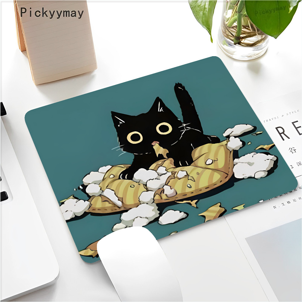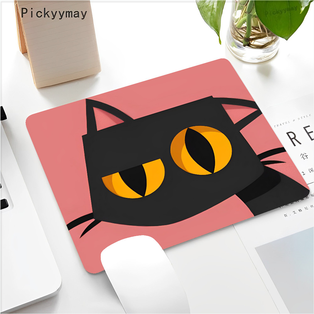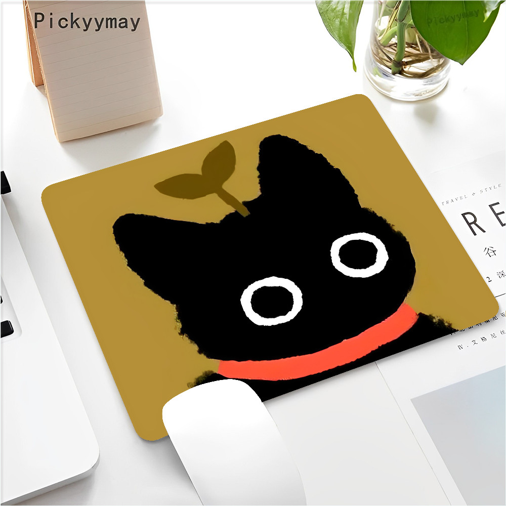 Black Cat Mouse Pad Small Office Computer Desk Mat Table Keyboard 22x18cm Mouse Pad Laptop Cushion Non-slip Desk Mat