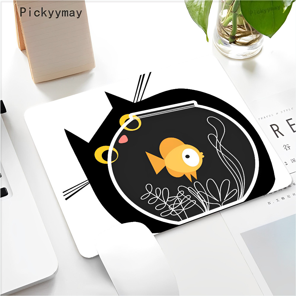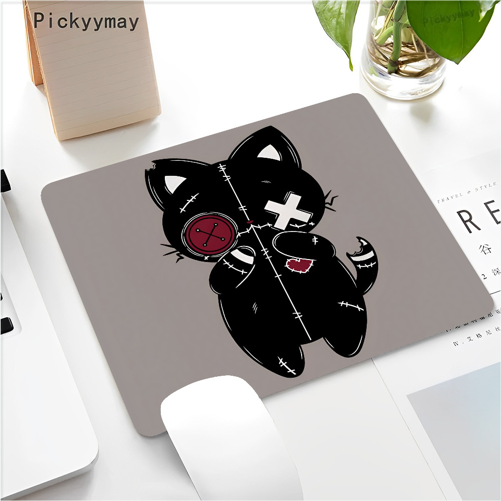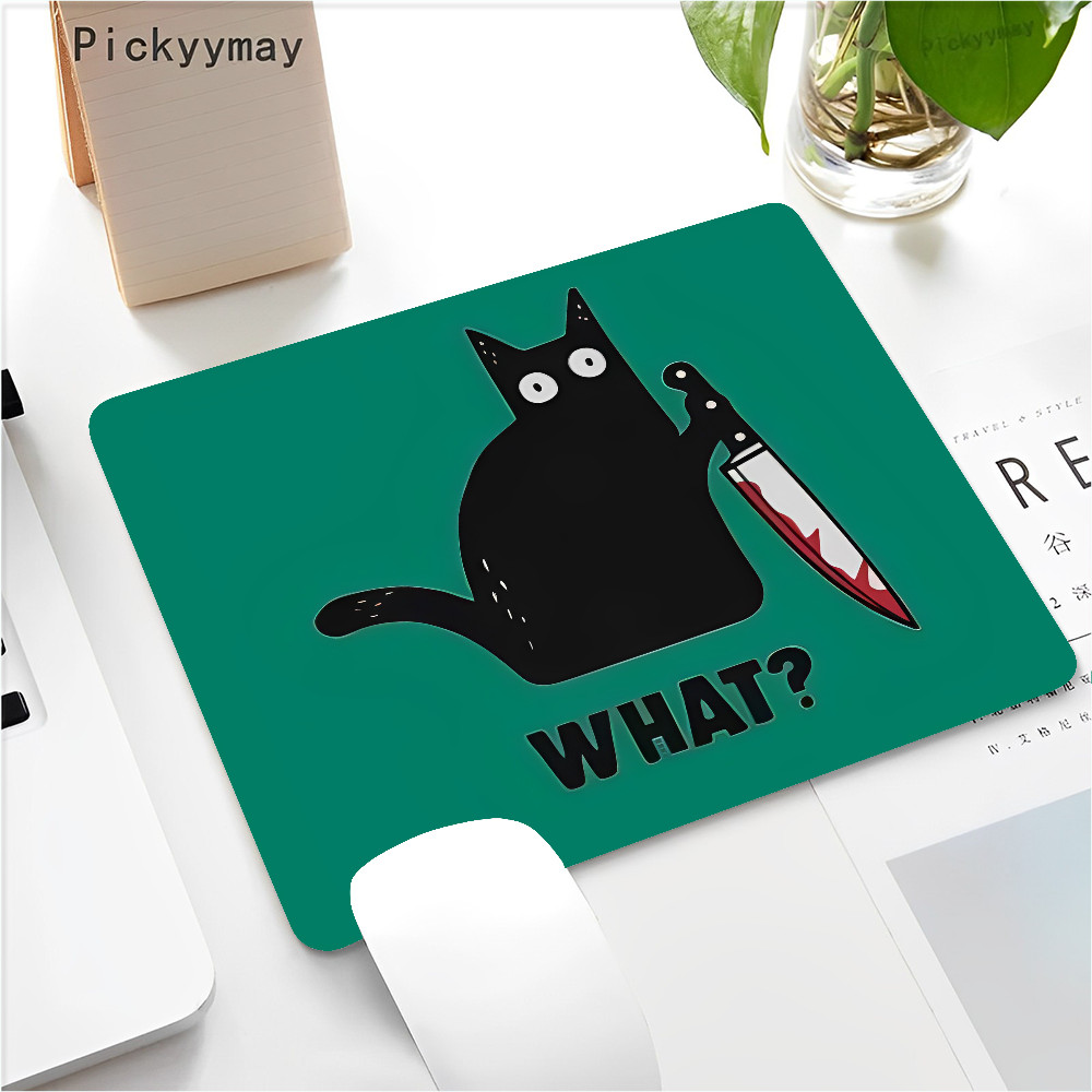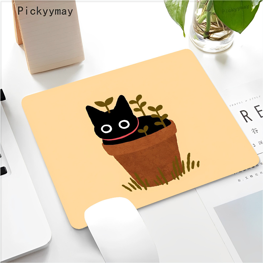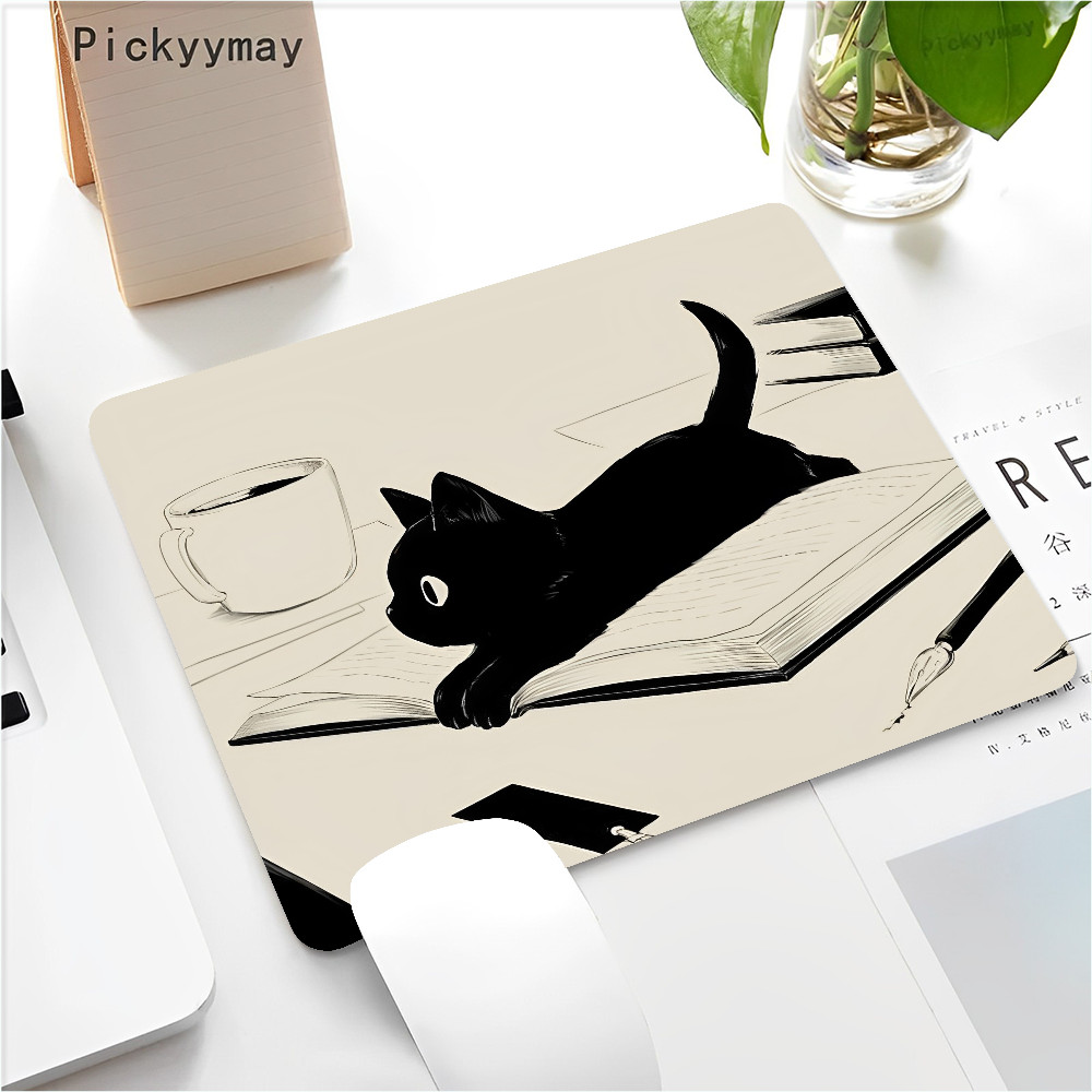 Black Cat Mouse Pad Small Office Computer Desk Mat Table Keyboard 22x18cm Mouse Pad Laptop Cushion Non-slip Desk Mat