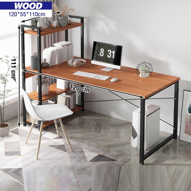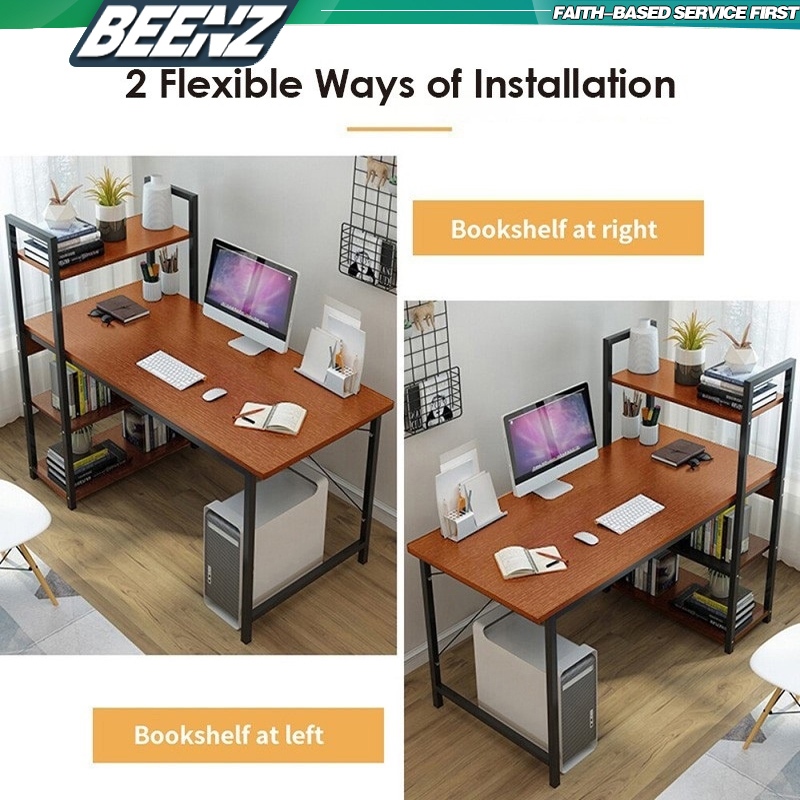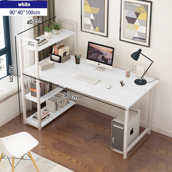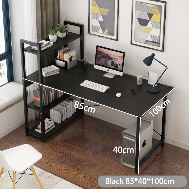 Black Computer Desk Office White Home Work Study Table with Bookshelf with Large Storage With Shelf