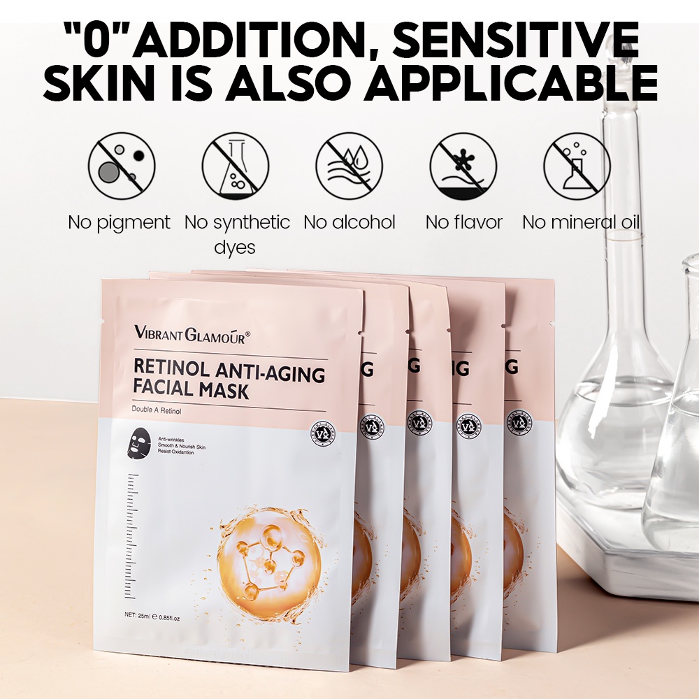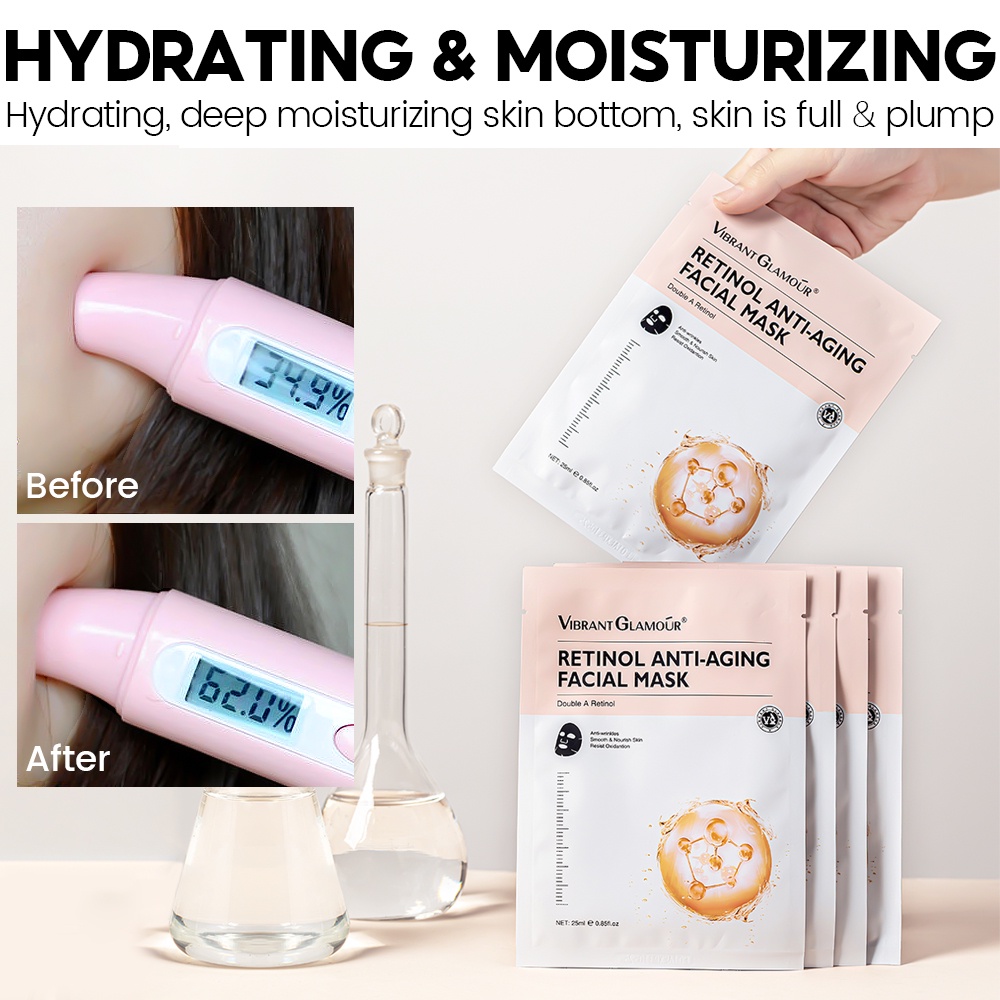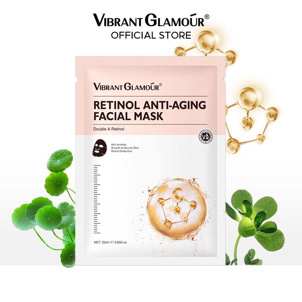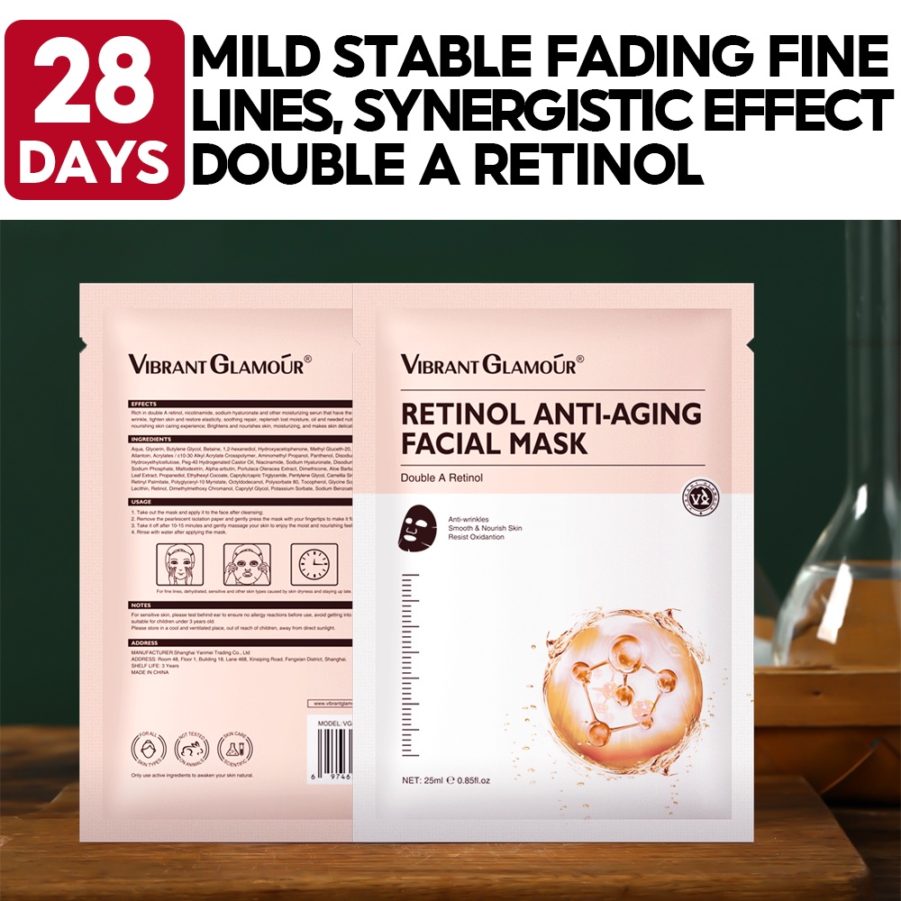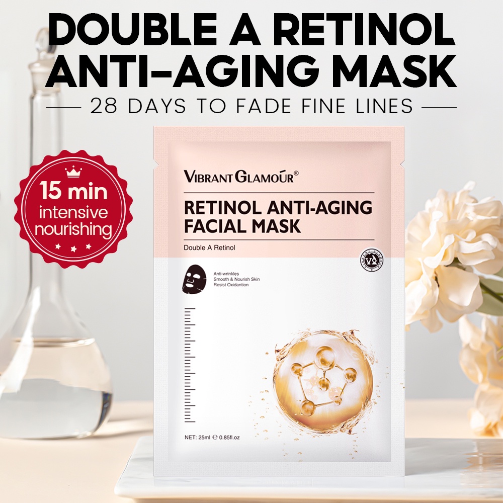 VIBRANT GLAMOUR Double A Retinol Facial Mask Anti-Wrinkle Anti Aging Whitening Sheet Masks Reduce Fine Lines Fading Dark Spots Melasma Firming Hyaluronic Acid Deep Moisturizing 1pc