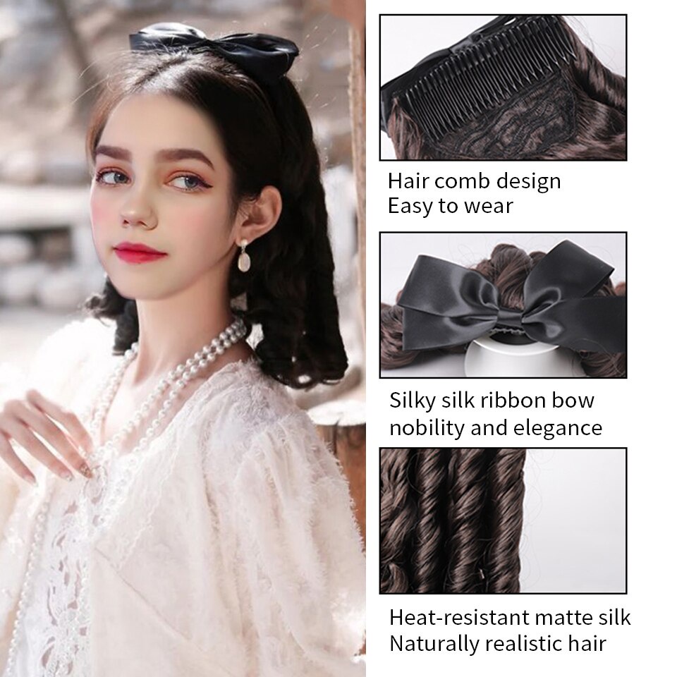 Black Curly Ponytail Hair Extensions with Hair Comb Synthetic Pony Tail Hair Clips Hairpieces For Women Heat Resistant