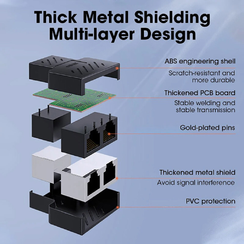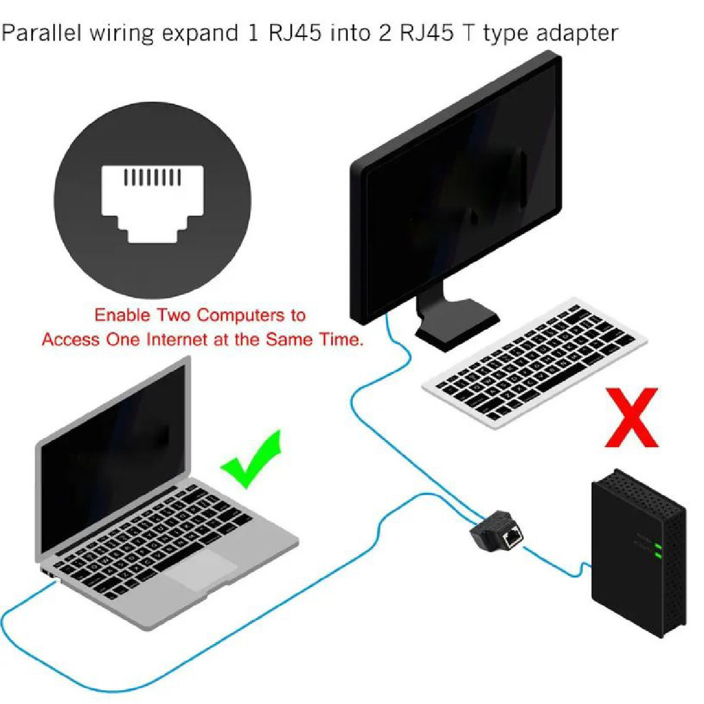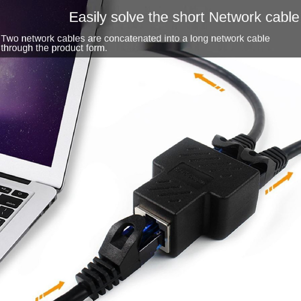 Black Double Cable Splitter Extender Connector RJ45 1 to 2 Way Ethernet Cable Port Network