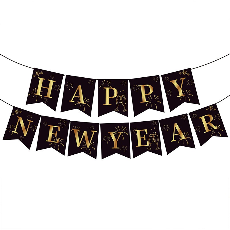 Black Gold Happy New Year Banner 2026 New Year Merry Christmas Home Festival Decor Party Backdrops Decorations Supplies