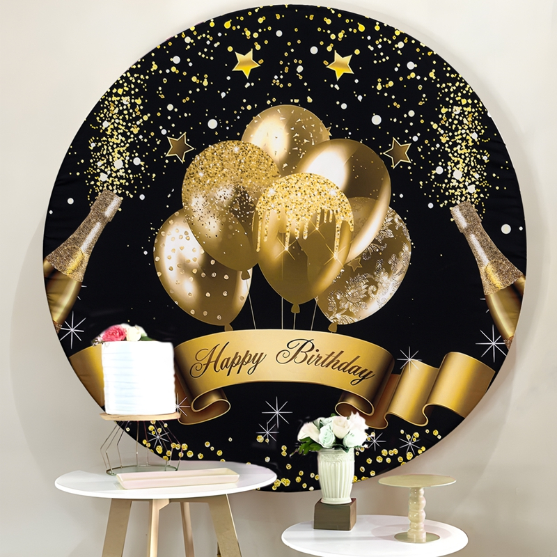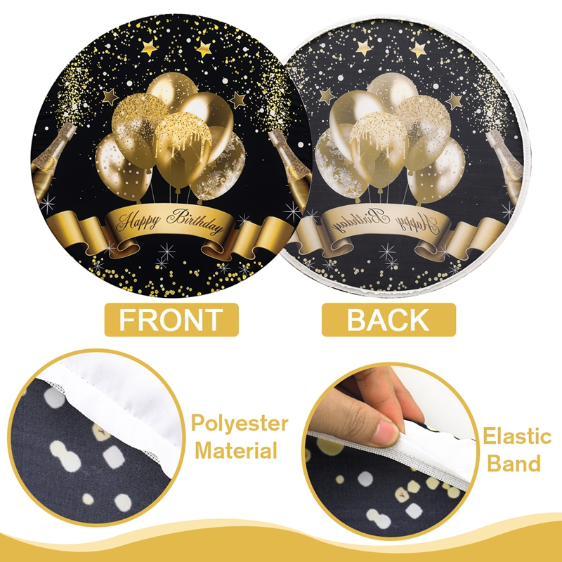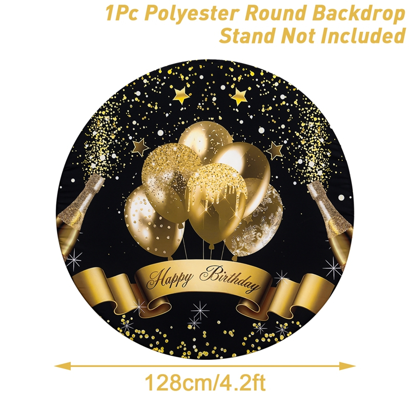 Black Gold Round Backdrop Cover for 128cm Circle Stand Wrinkle Free Stretchy Circle Arch Round Backdrop Cover for Party Wedding Birthday Baby Shower happy birthday banner