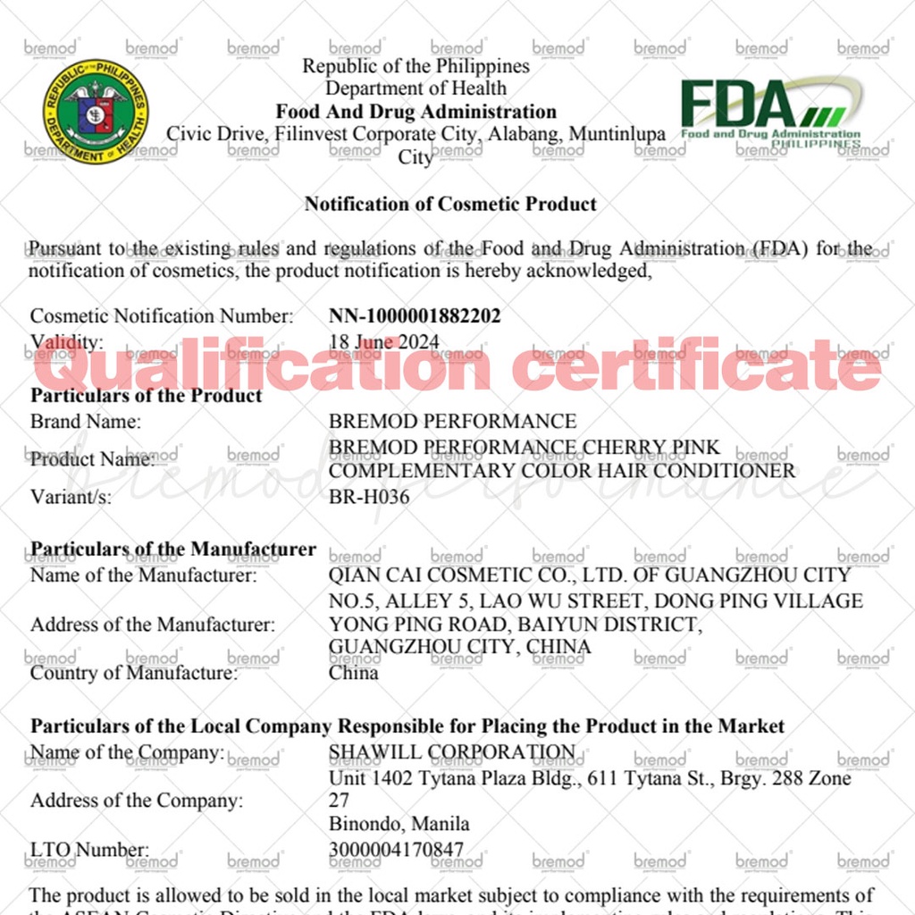 Bremod Hair Color Lock Cream Conditioner 100ml Supplement Pigment Nourish Damaged Frizzy Cherry Pink
