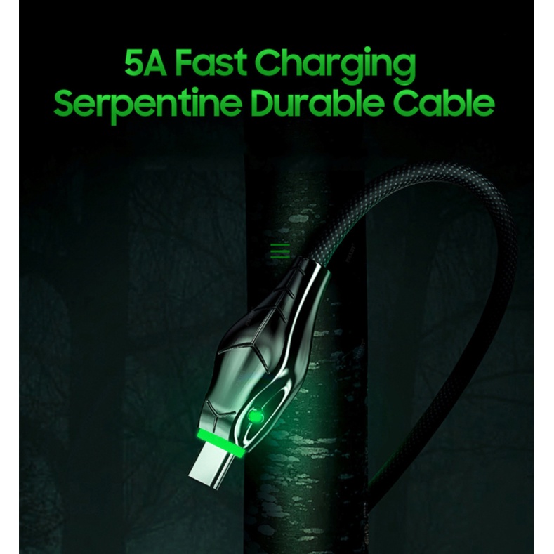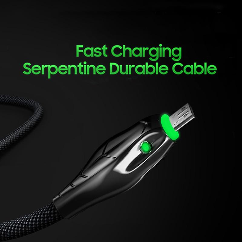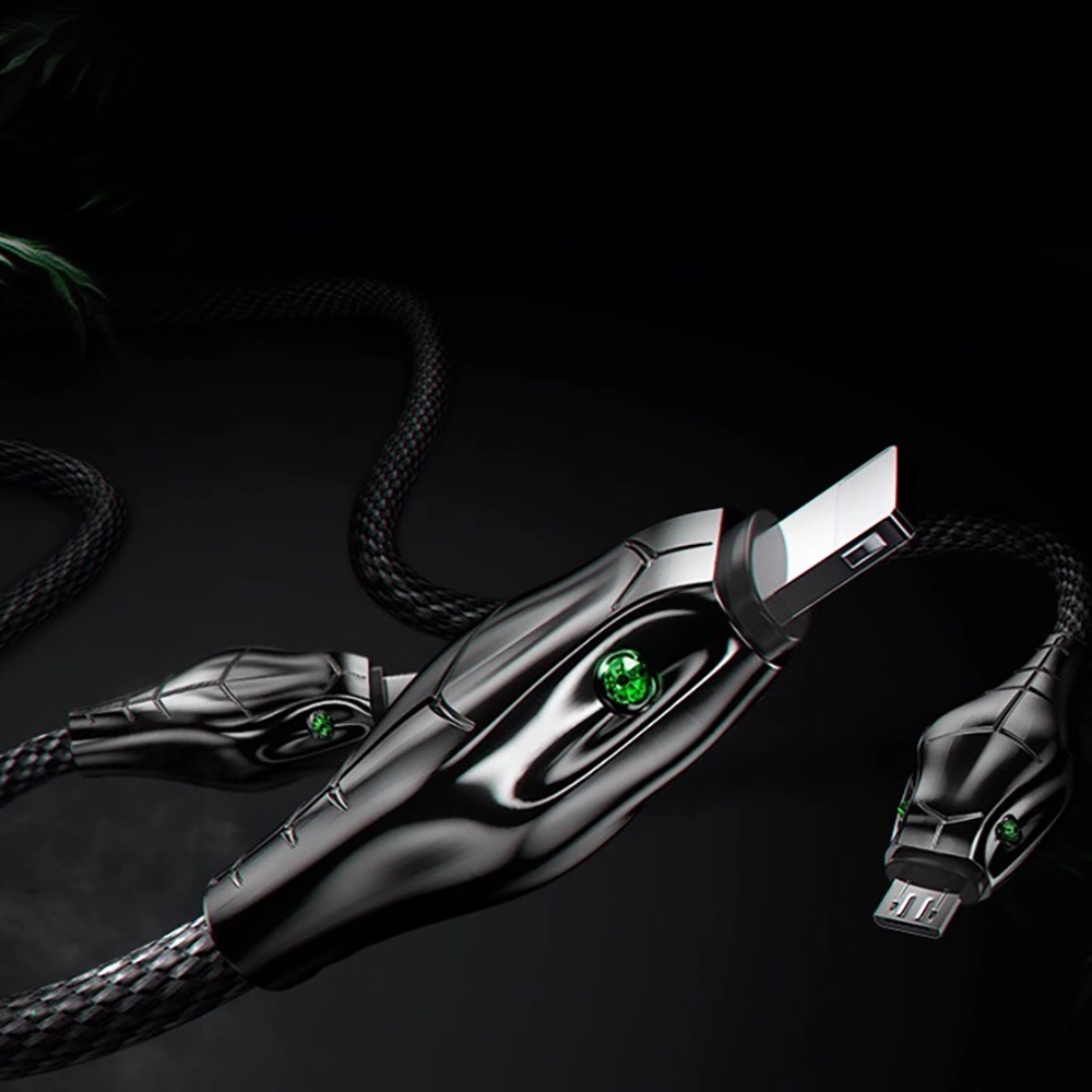 Black Mamba Snake shape Charging Cable,3A Fast Charger LED Light Micro USB/Type-C Data Transmission Charging Cable for Android Phone
