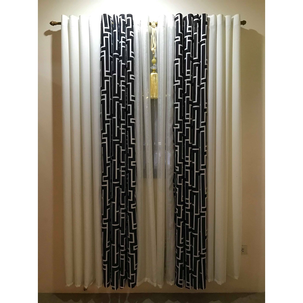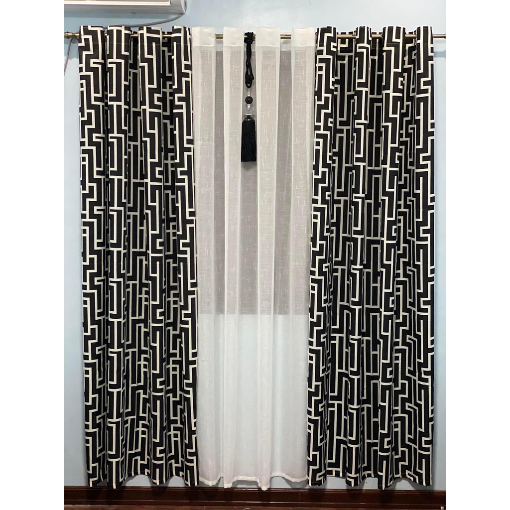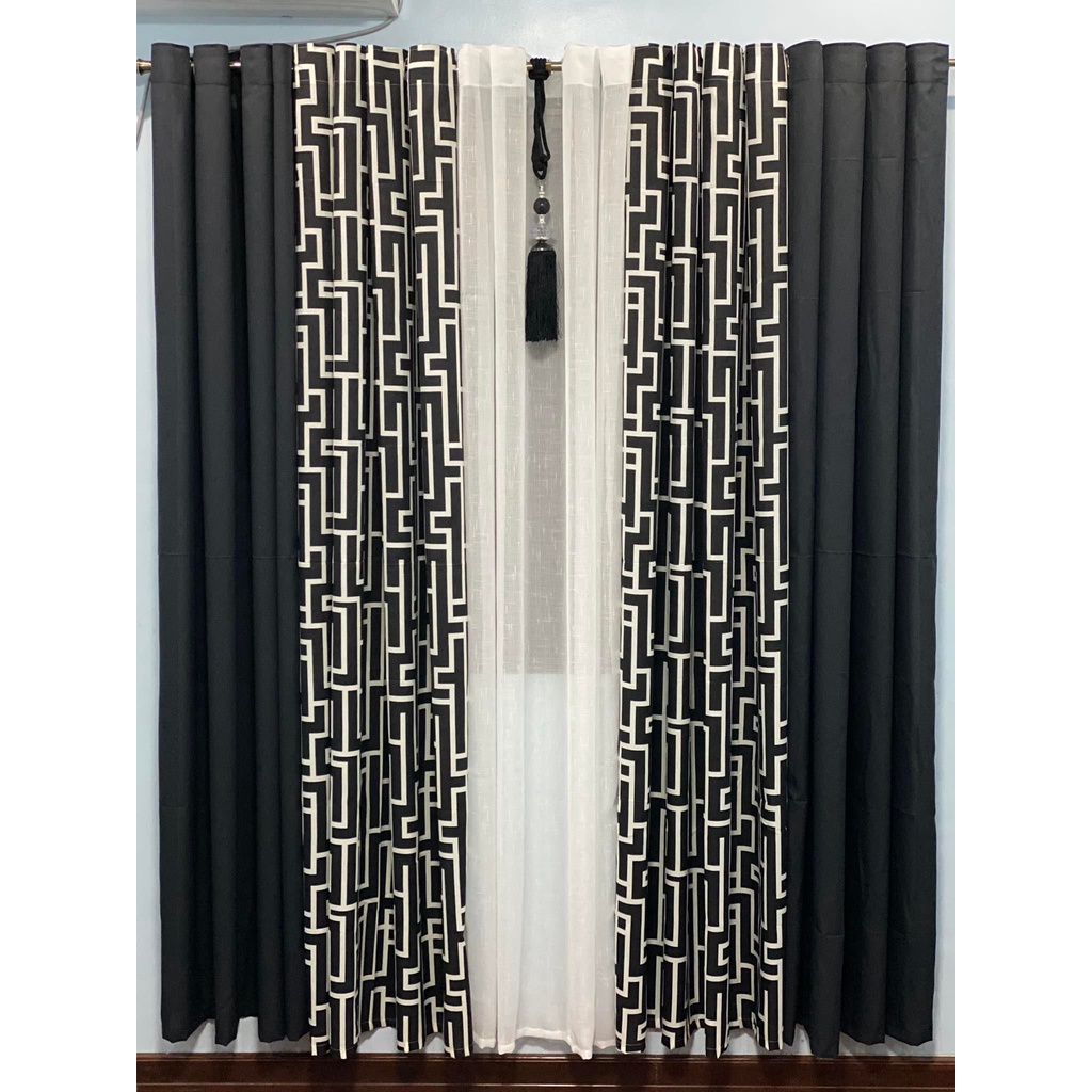 Black Maze (Icon) Cotton Ring Curtains by JMV Home Decor