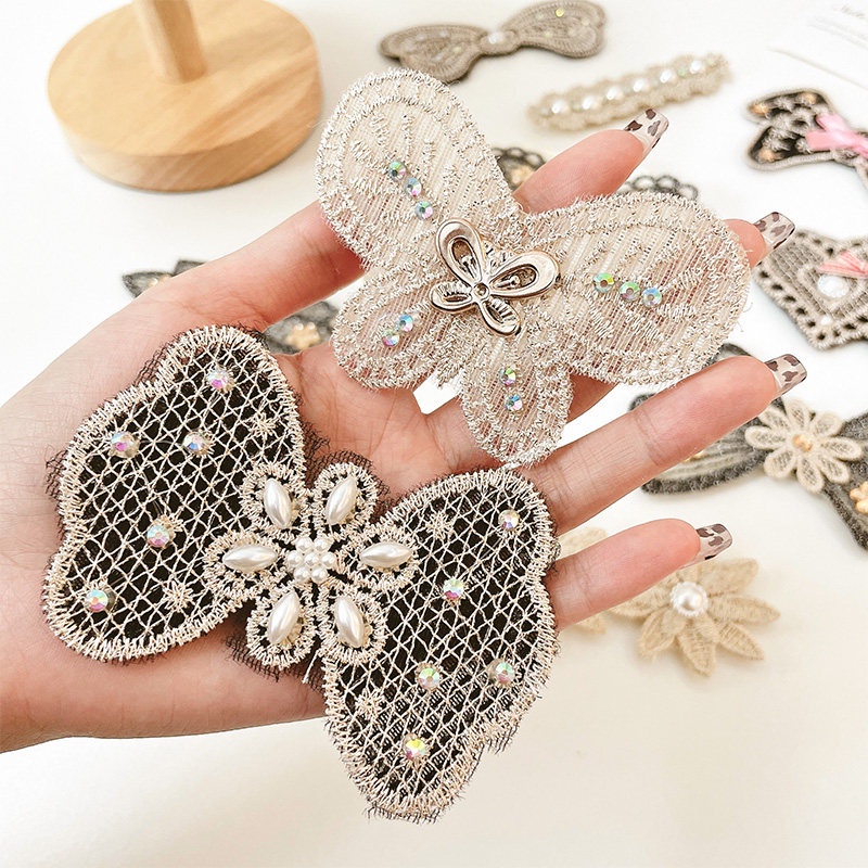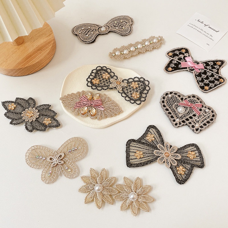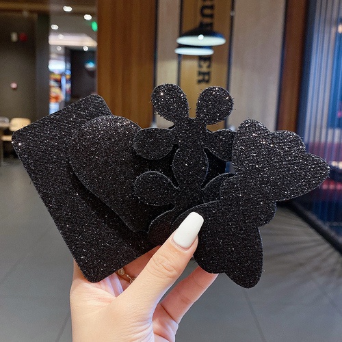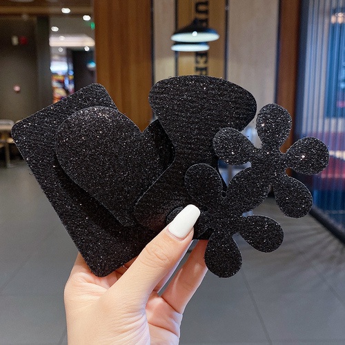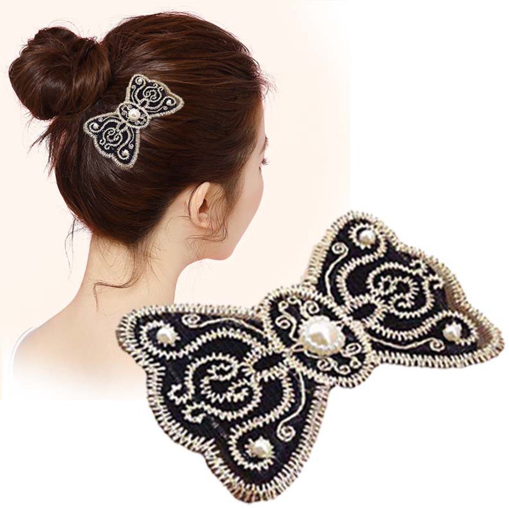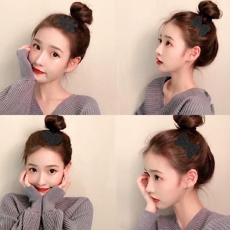 Black Popular Bangs Hair Stickers Korean Fashion Lace Pearl Magic Stickers Net Celebrity with The Same Style Hair Fixed Hair Stickers