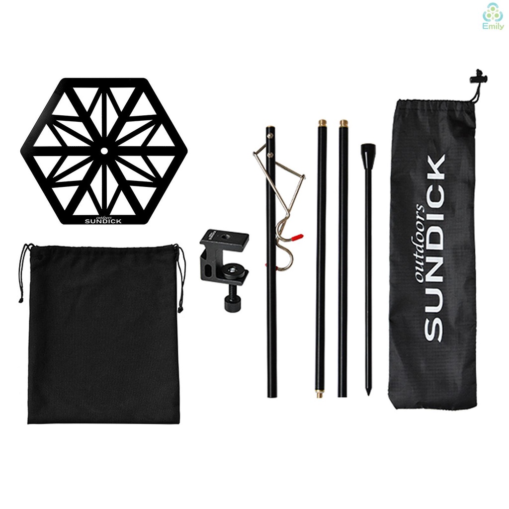 Black Portable Light Pole Sundick Tray Lantern Stand Camping Table Lamp Pole