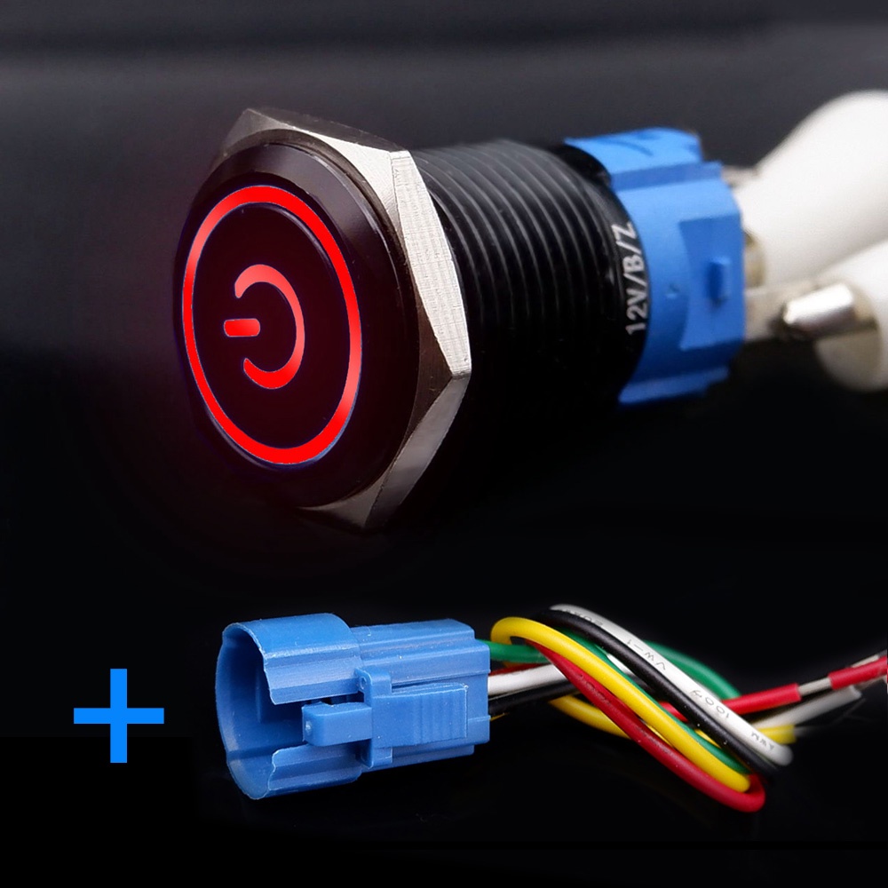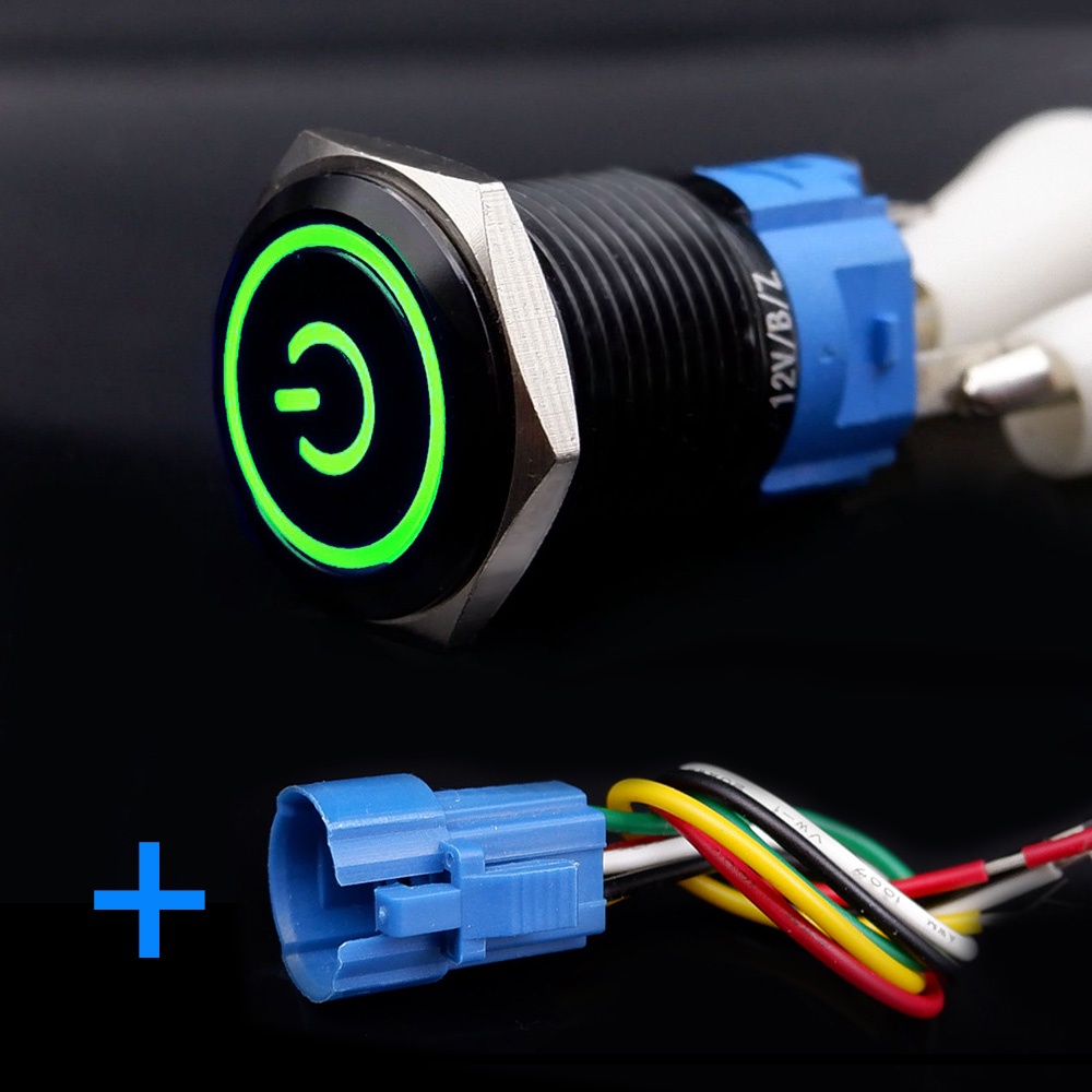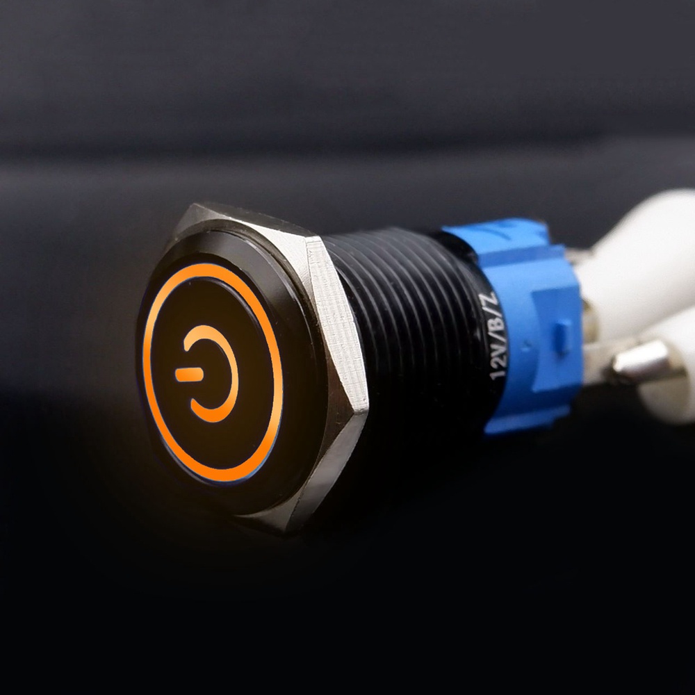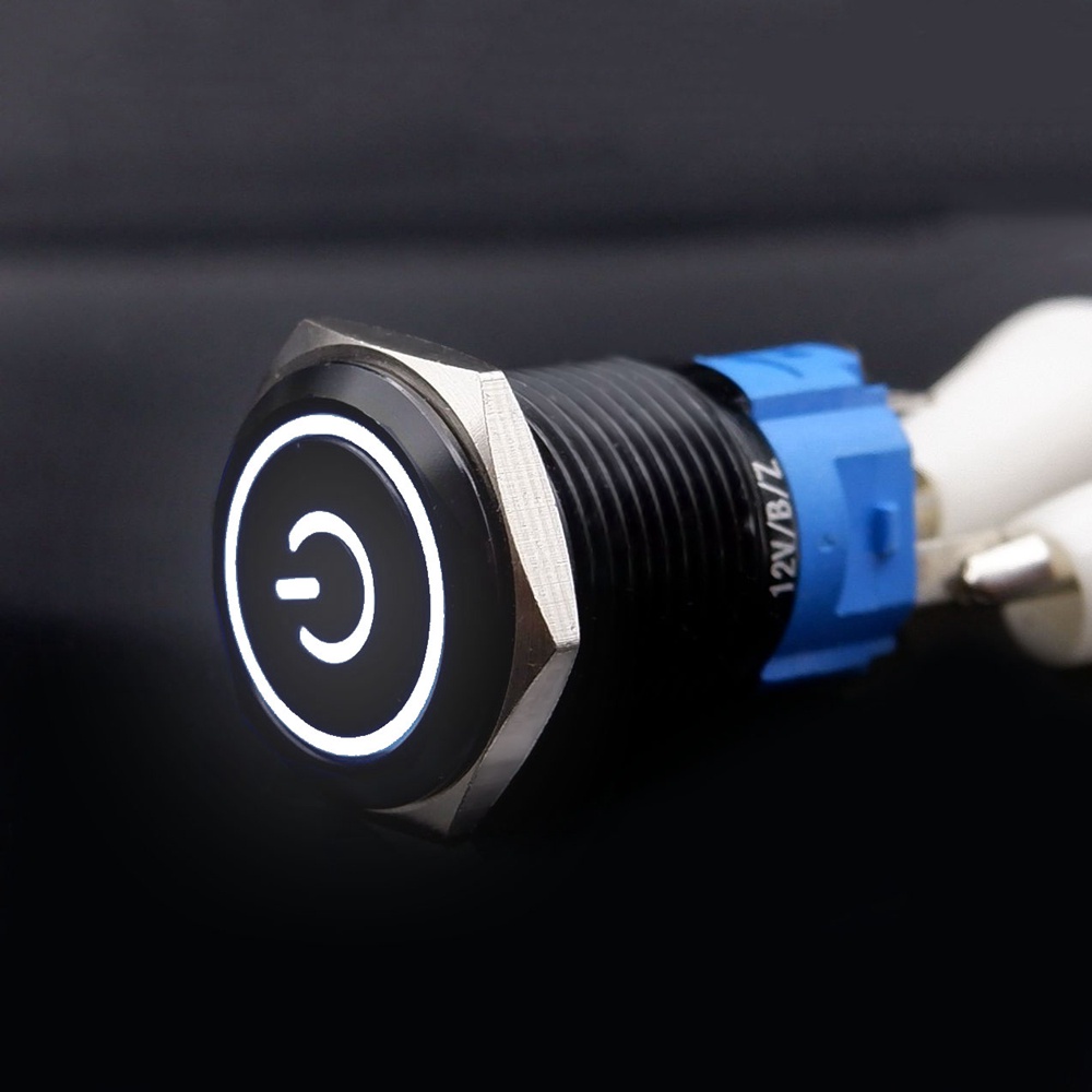 Black Push Button Switch 16mm Waterproof illuminated Led Light Metal Flat Momentary Switches with power mark 5V 12V 24V