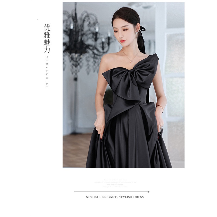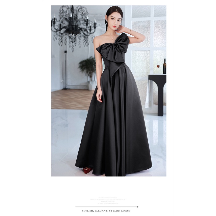Black Satin Evening Dress Women's Bra Long Company Annual Meeting Graduation Dress MZ570