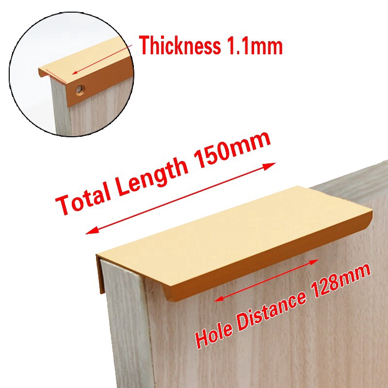 Black Silver Gold Hidden Cabinet Handles Stainless steel Kitchen Cupboard Pulls Drawer Knobs Furniture Handle