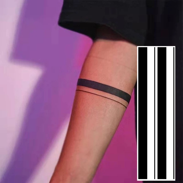 Black Stripe Waterproof Temporary Tattoo Stickers Male Arm Streak Line Punk Style Art Fake Tattoo Personality Leg Tattoo Female