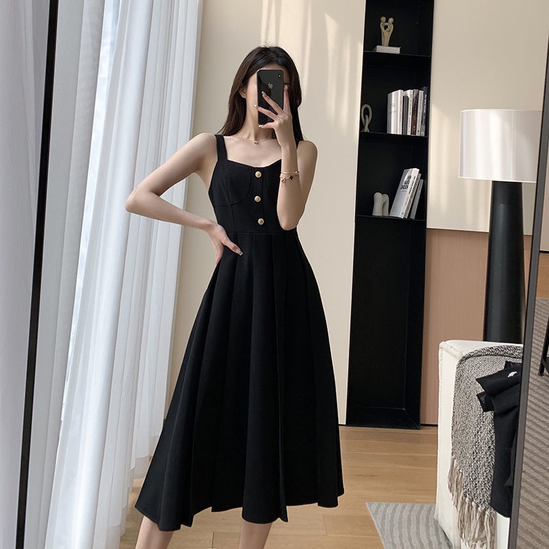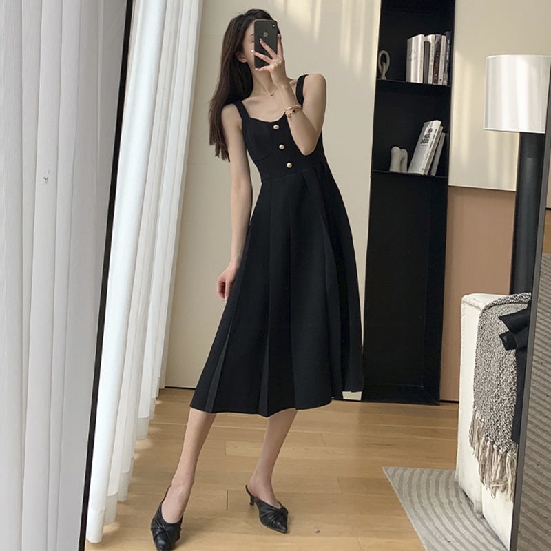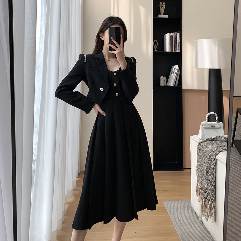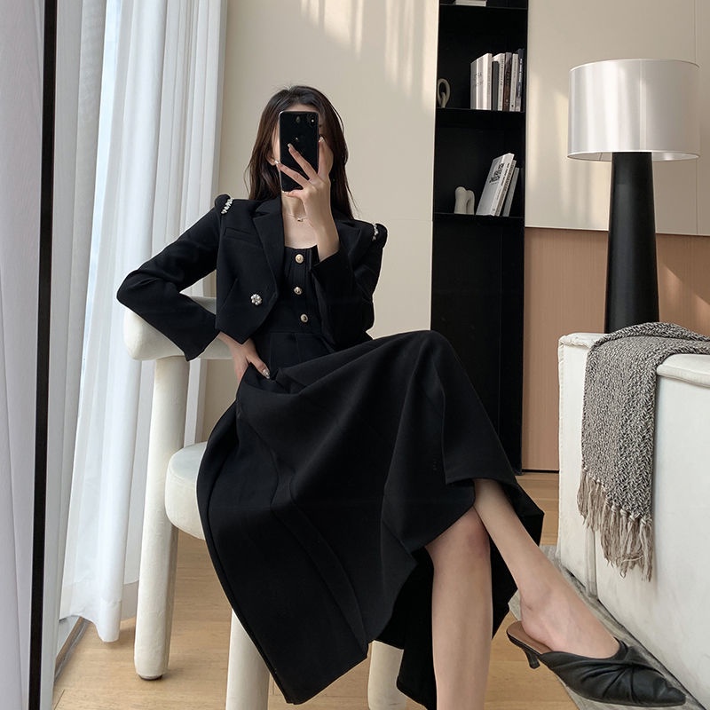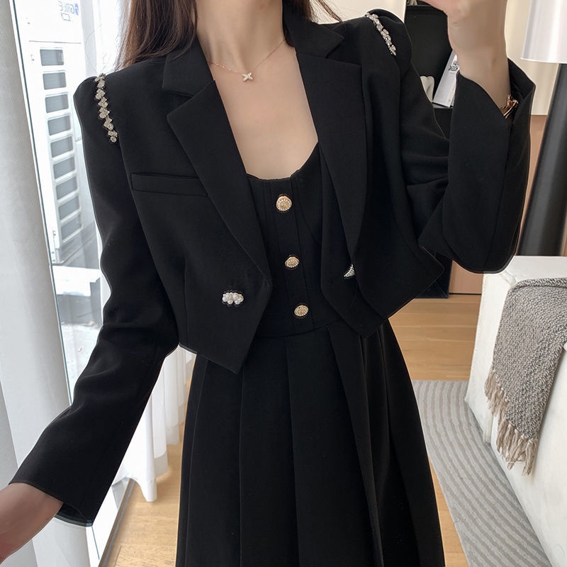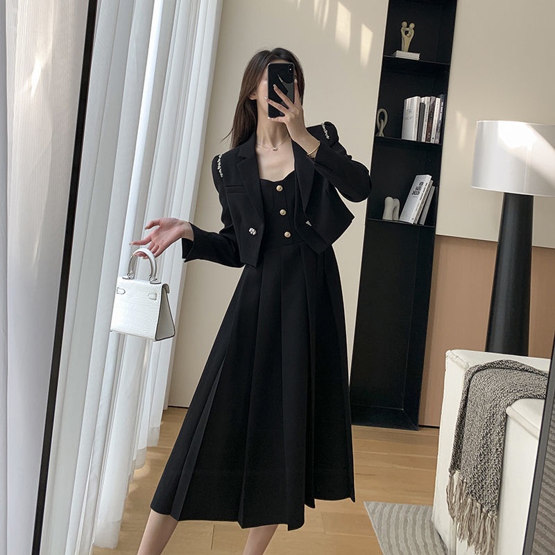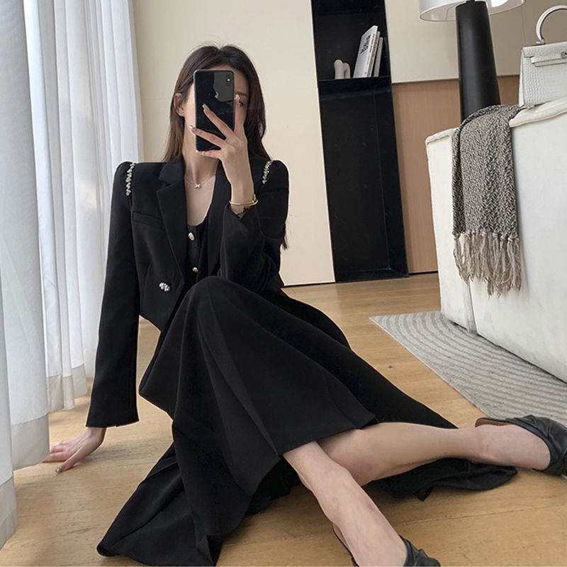 Black Suit Set Women's New black Slip Dress Two-Piece Set