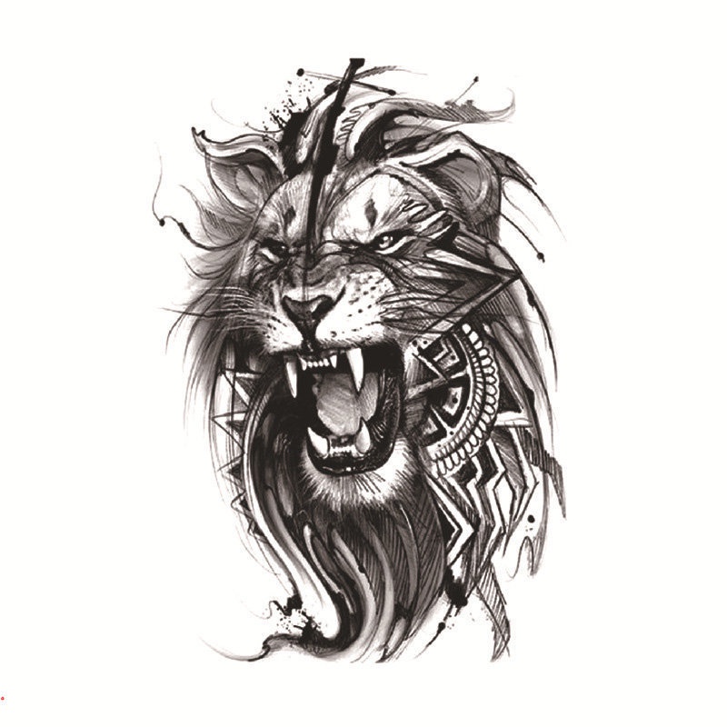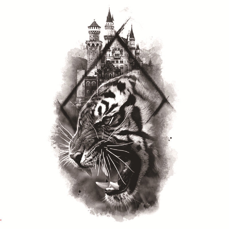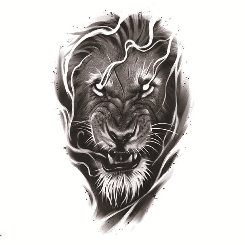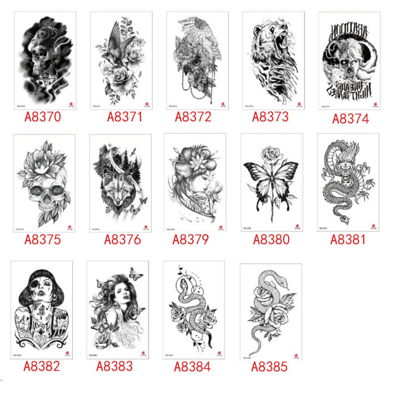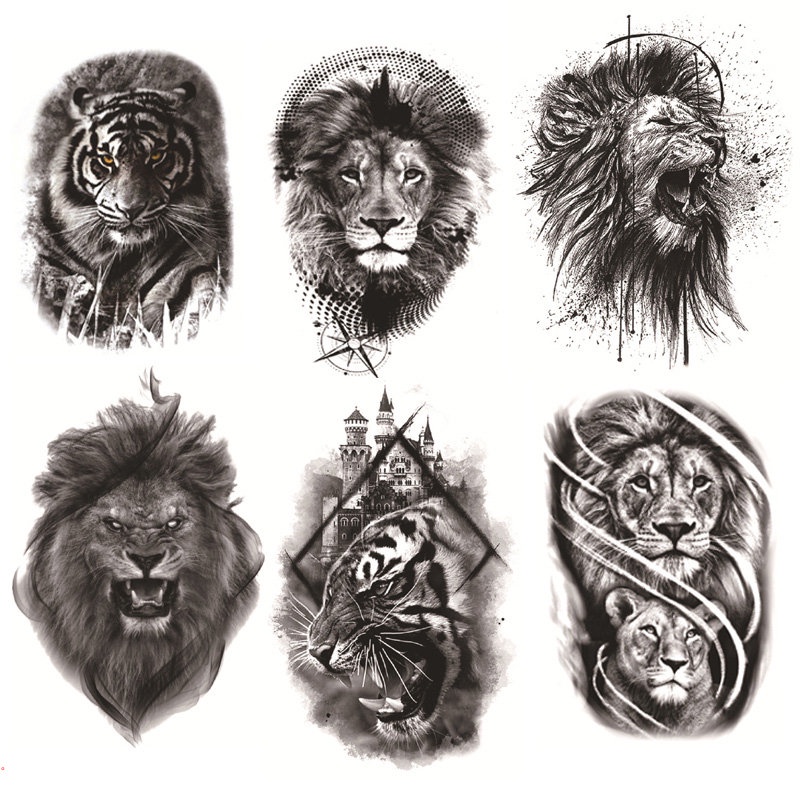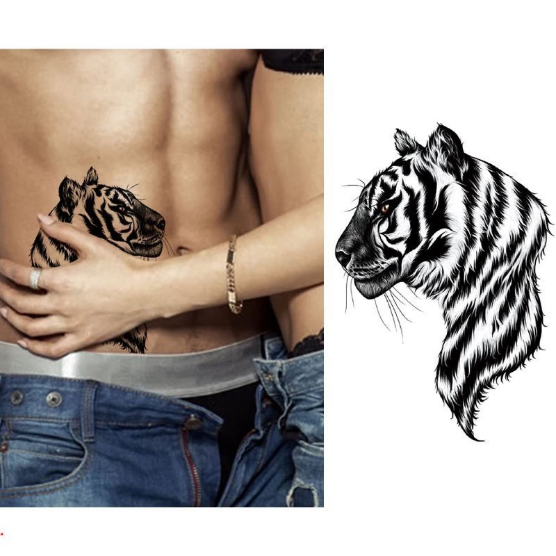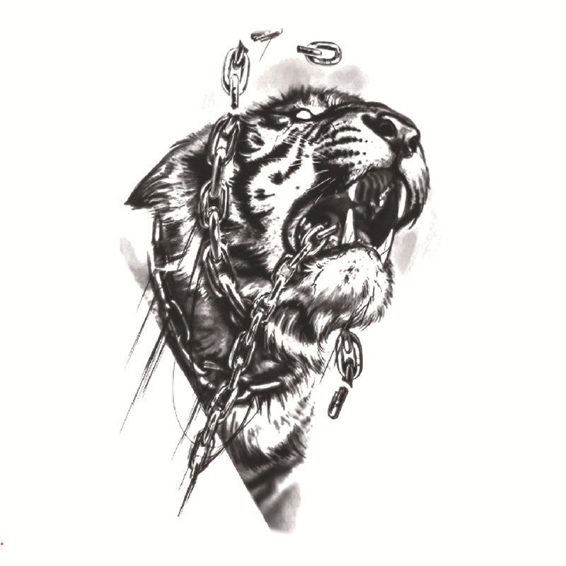 Black Tribal Lifelike Tiger Gladiator Temporary Tattoo Male False Forearm Transfer Tattoo Sticker Pirate Compass Clock Lion Sexy Skull False Tattoo Female Soldier Tattoo