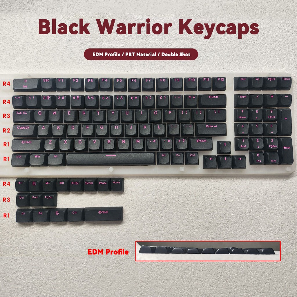 Black Warrior Keycaps PBT Double-shot EDM Profile Keycap Custom Keycaps Compatible with Cherry Gateron MX Switches