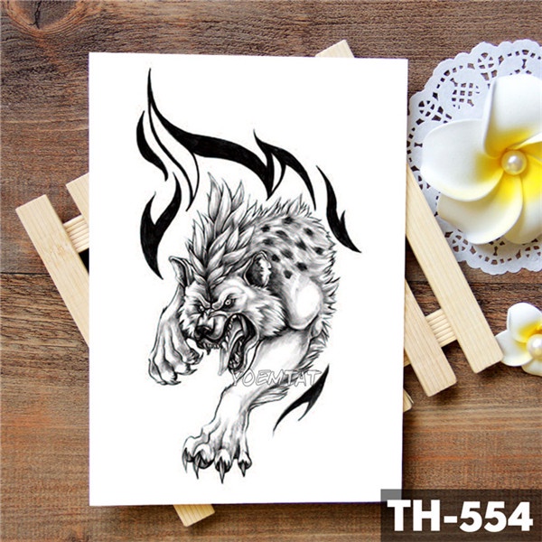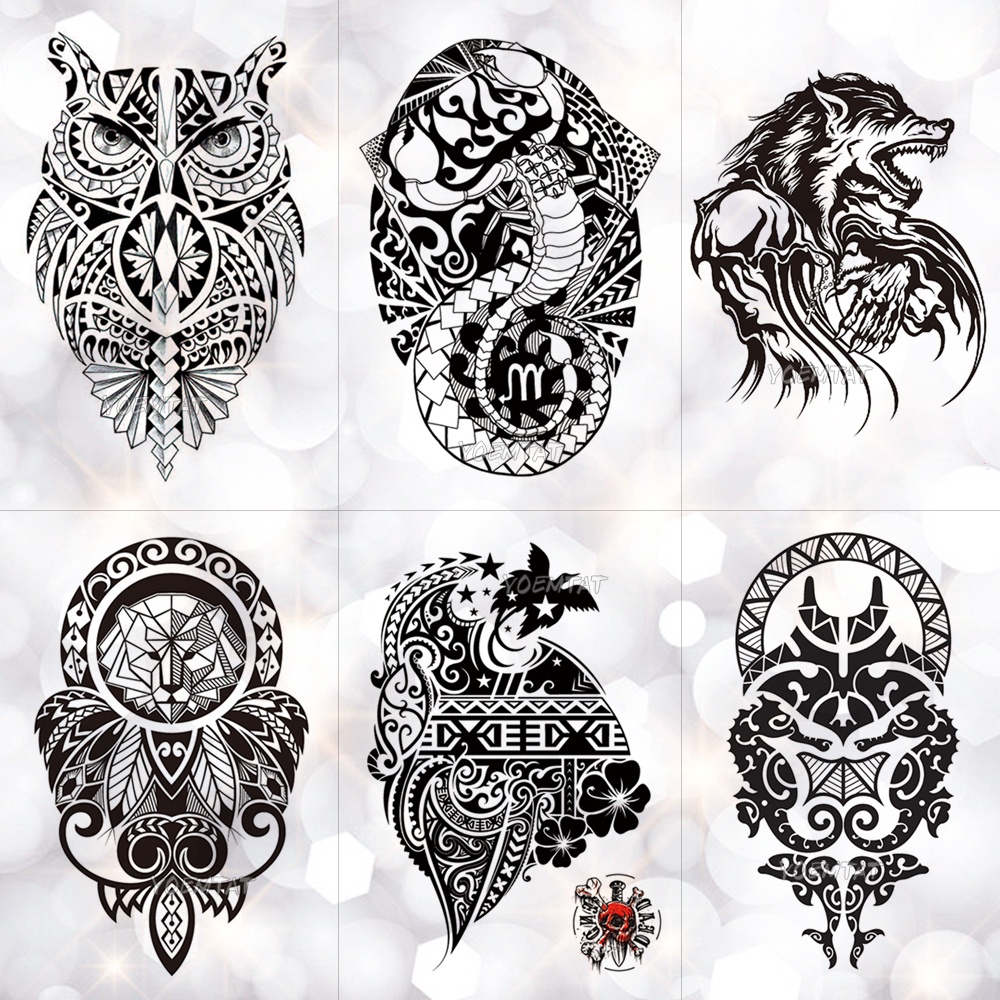 Black Wolf Lion Totem Waterproof Temporary Tattoo Sticker Owl Power Maori Flash Tattoos Body Art Arm Fake Tatoo Men