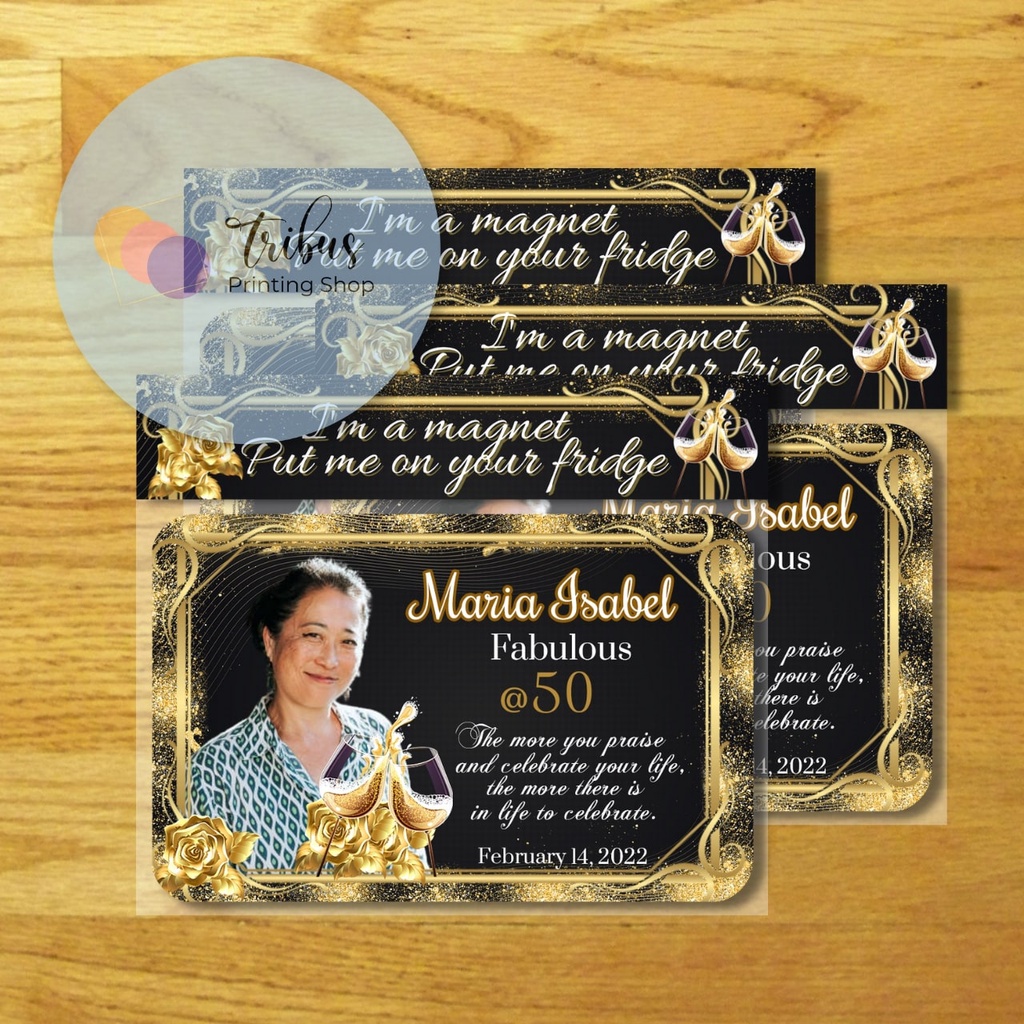 Black and Gold Theme Adult Birthday Ref Magnet Souvenir (Glittery)
