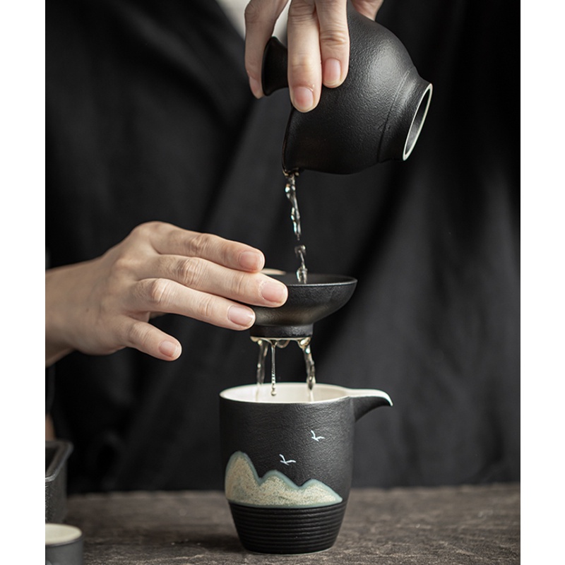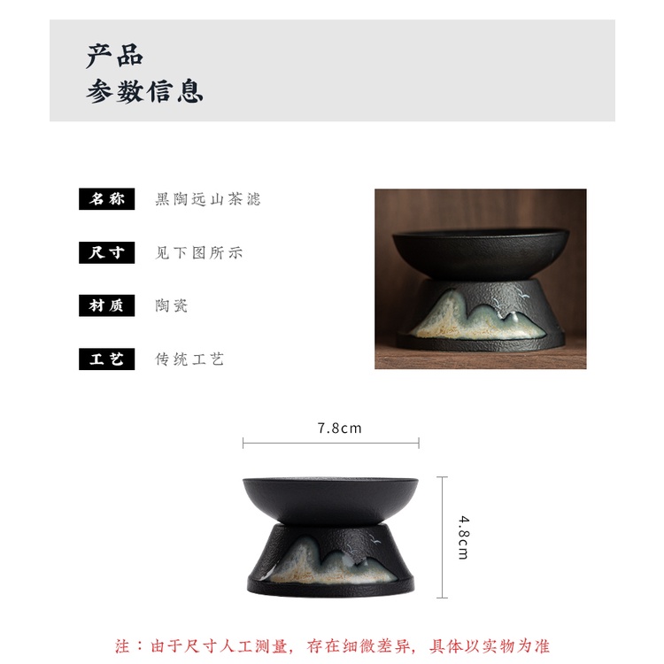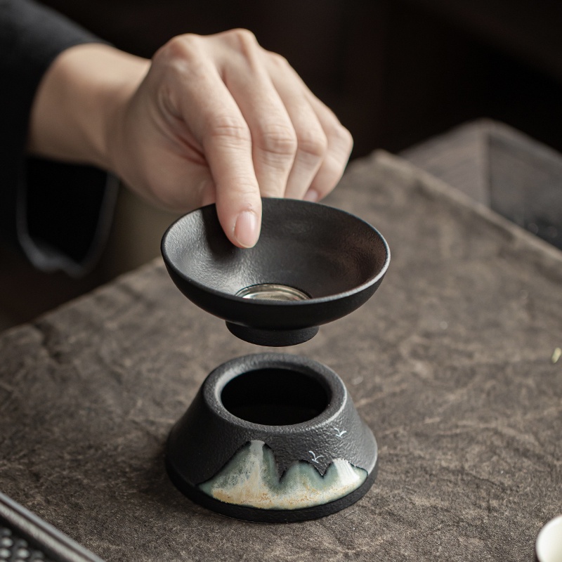 Black ceramic Far Mountain Tea Leak Tea Filter Ceramic Tea Set Household Vintage Tea Scraps Strainer Fine Hole Tea Strainer