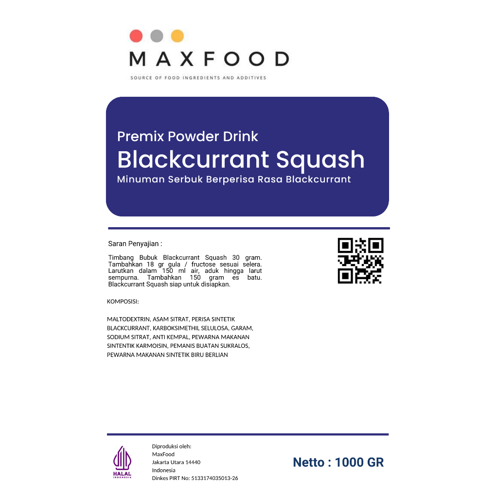 Blackcurrant Squash Blackcurrant Flavored Syrup Powder/ 1 KG