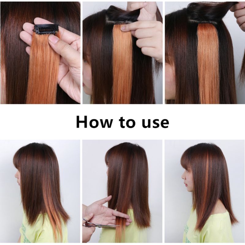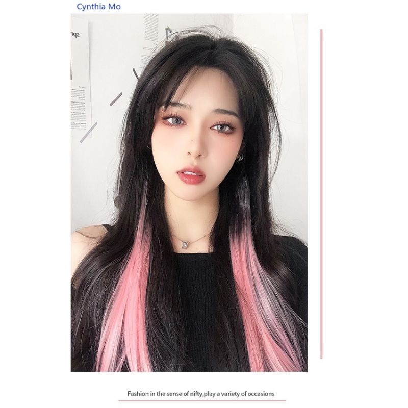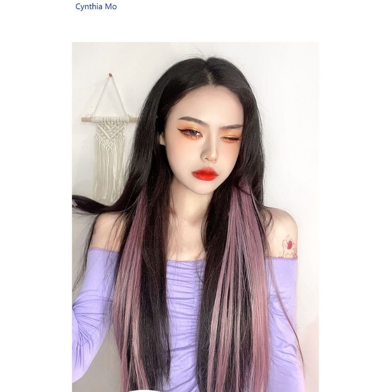 Blackpink Straight Hair Wig Tinsel Hair Clip For Women Toupee Multicolor Hair Extension