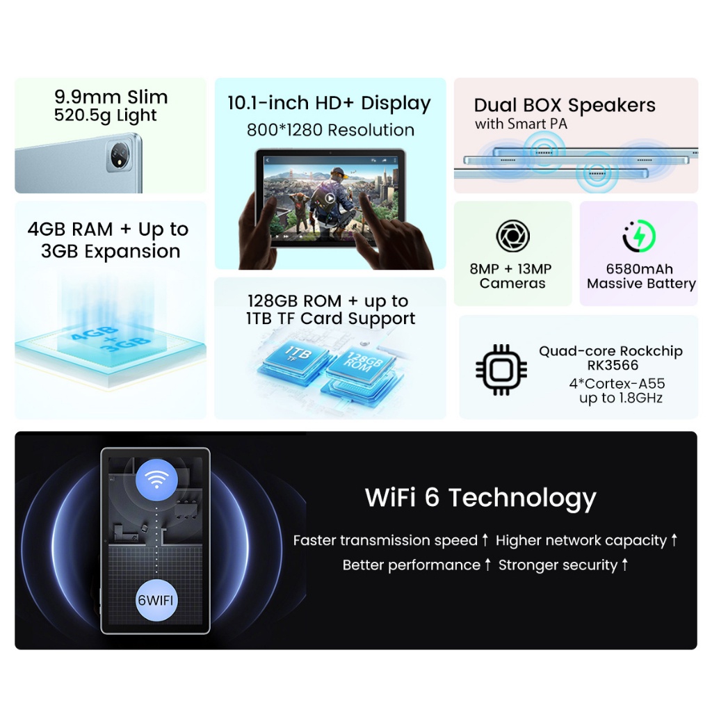Blackview Tab 8 WiFi 4+64GB/128GB 10.1-inch Display 6580mAh Battery WiFi 6 Android Tablet PC