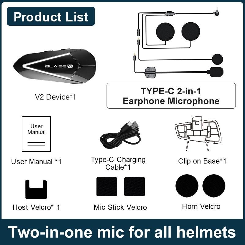 Blaise V2 Helmet Intercom Motorcycle Bluetooth Headset Music sharing while in intercom Waterproof Riding Headset Communication