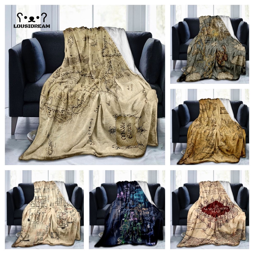 Blanket Middle Earth Map Throw Blanket Game Movie Map Ultra Soft Flannel Lightweight Bed Blanket Quilt Durable Home Decor