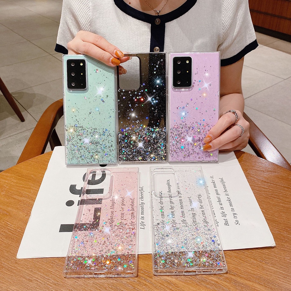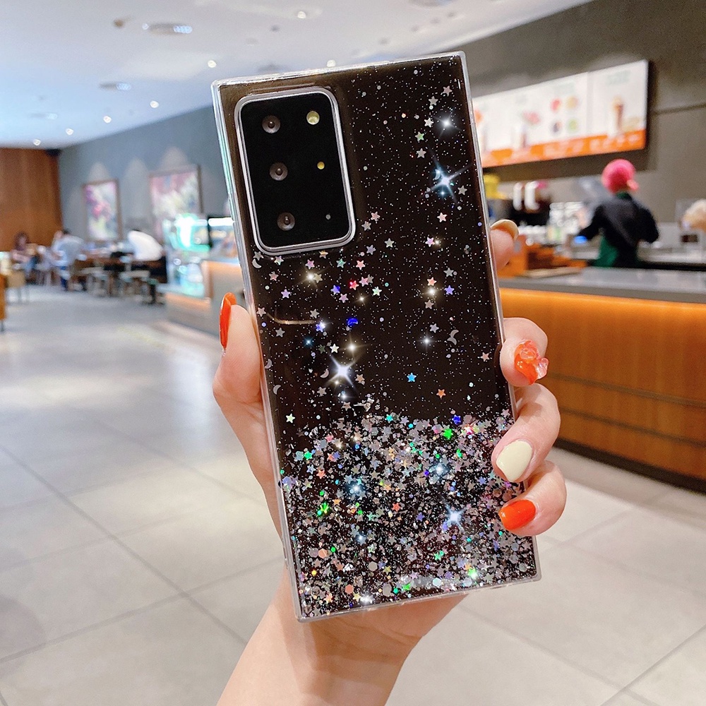 Bling Stars Sequin Clear Phone Case For Samsung Galaxy S25 Edge S24 S23 S22 Note 20 Ultra S24 FE Note 10 Plus Lite Soft Cover
