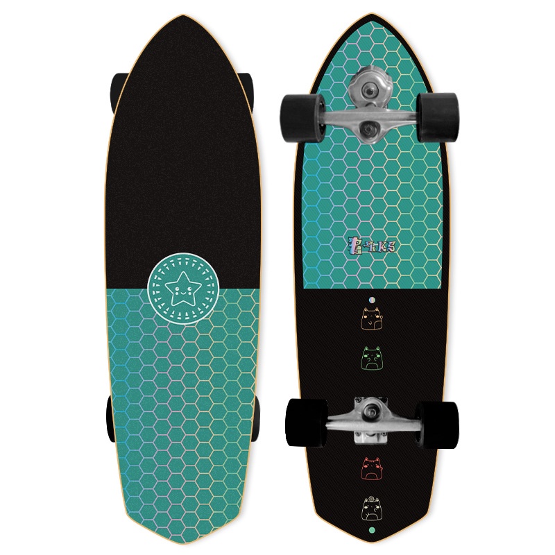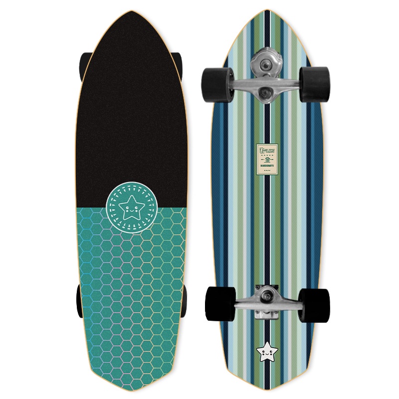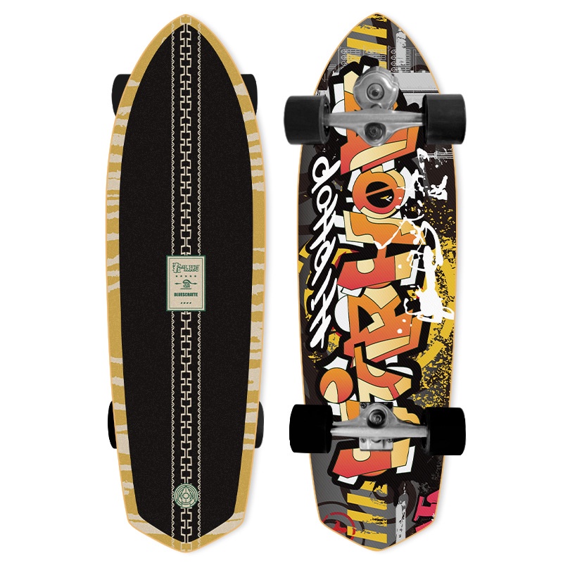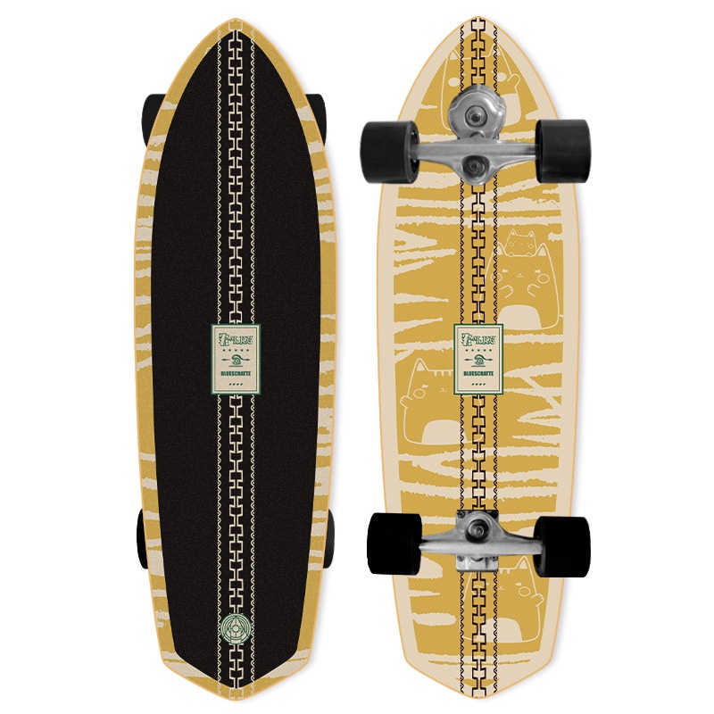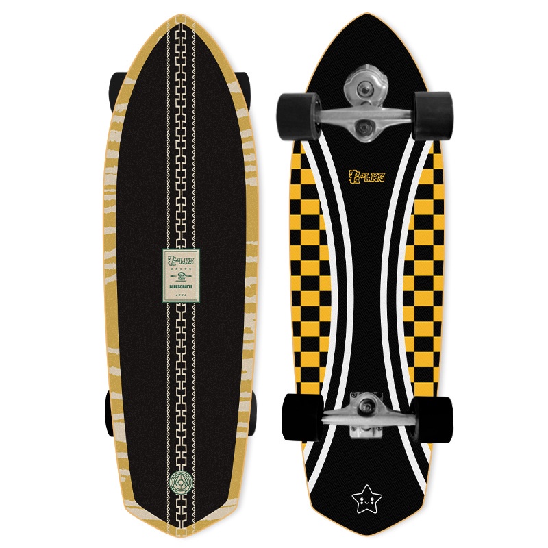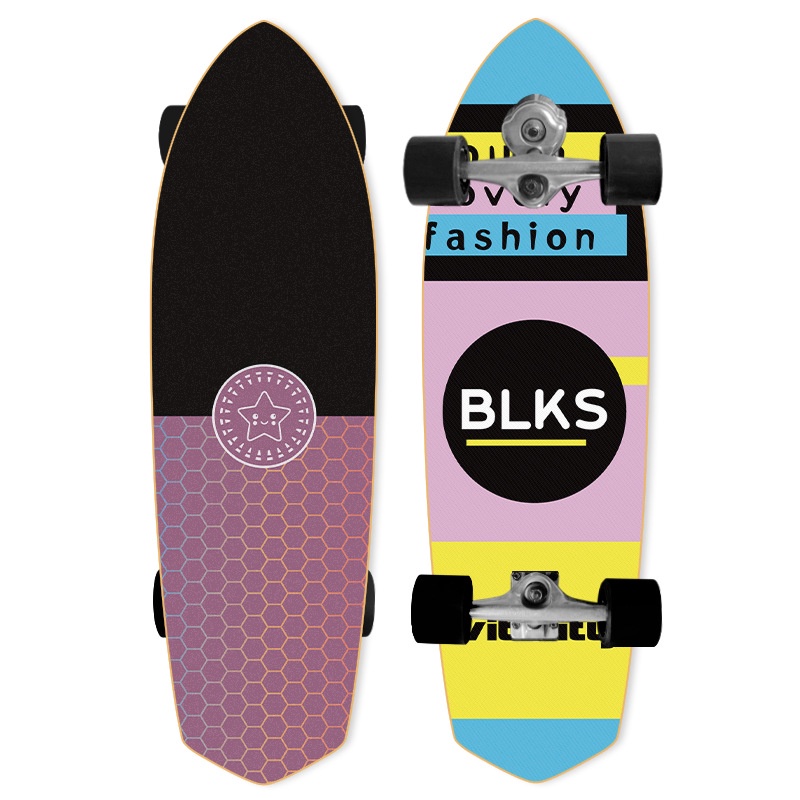 Blks Land Surfboard S6 Double Steering Smooth Star SM Propeller Simulation Surfing Practice Skateboard 34in