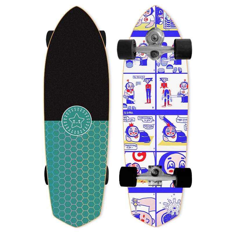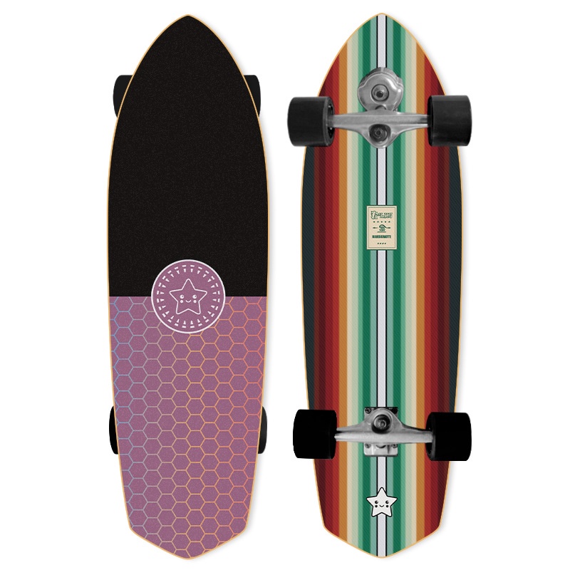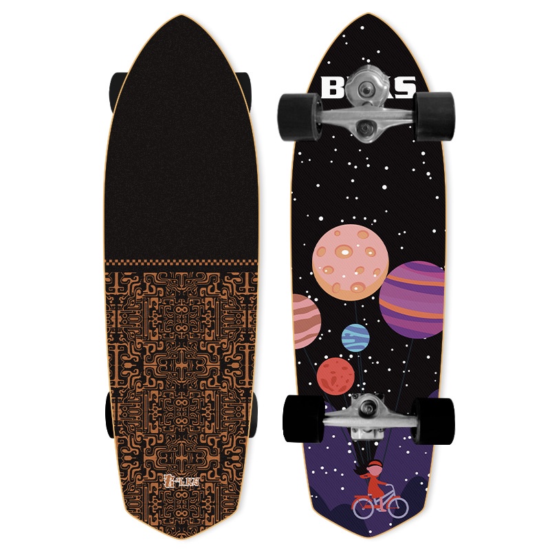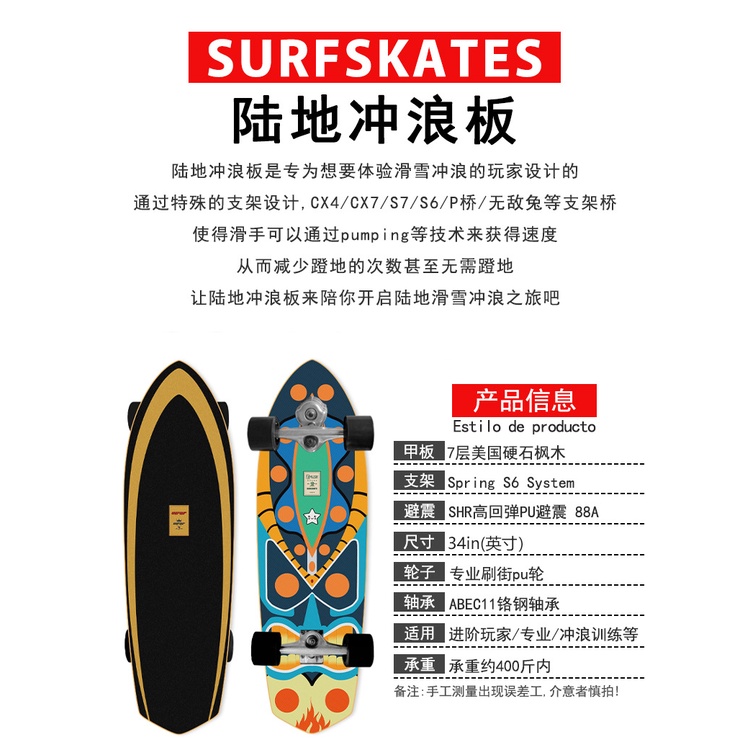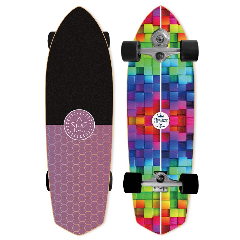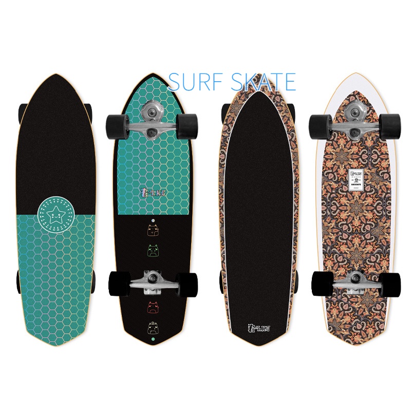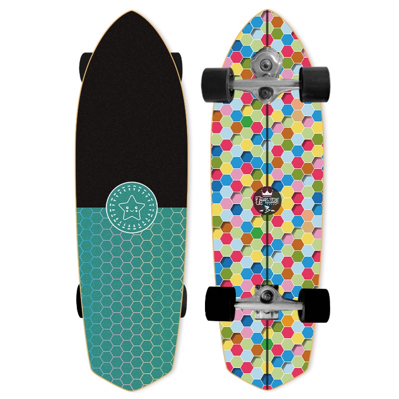 Blks Land Surfboard S6 Double Steering Smooth Star SM Propeller Simulation Surfing Practice Skateboard 34in