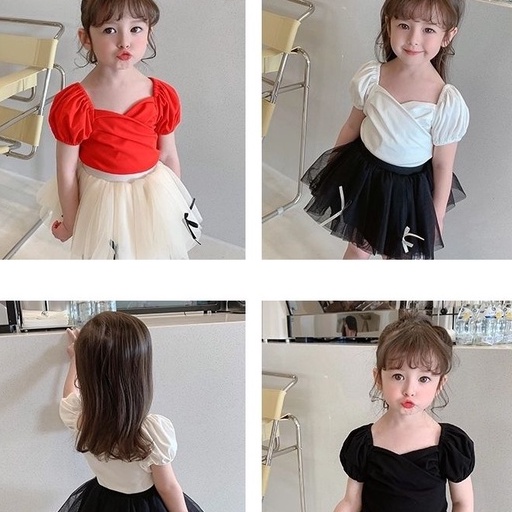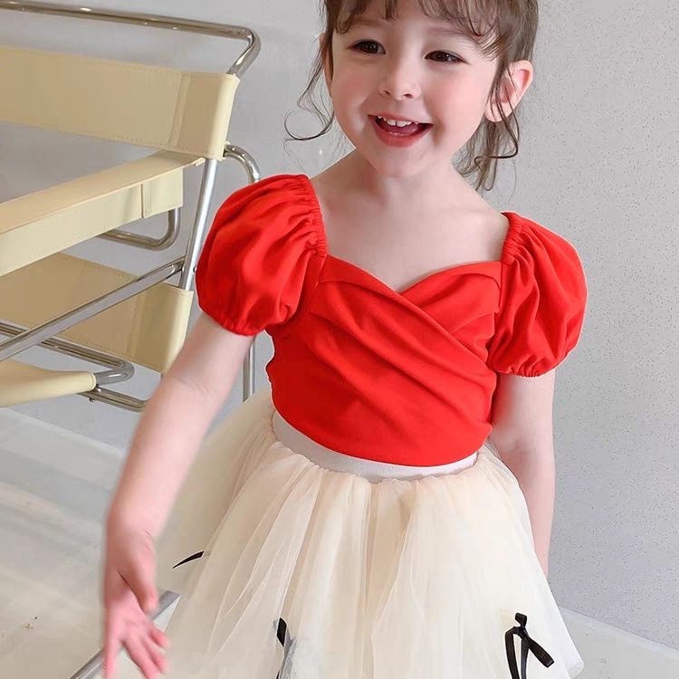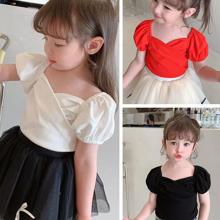 Blouse Kids Girl T-shirt Korean Short Sleeve Shirt Baby Thin Base Shirt Girl Princess Top Blouse Budak Perempuan