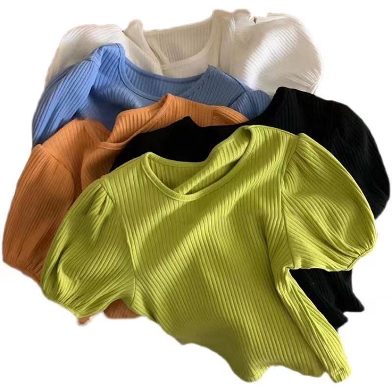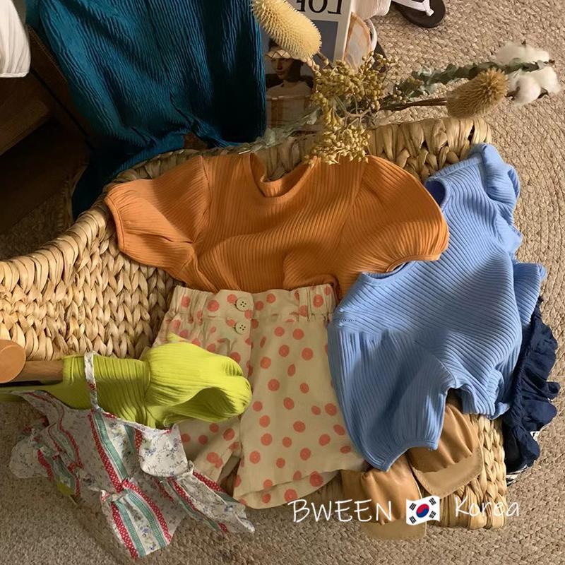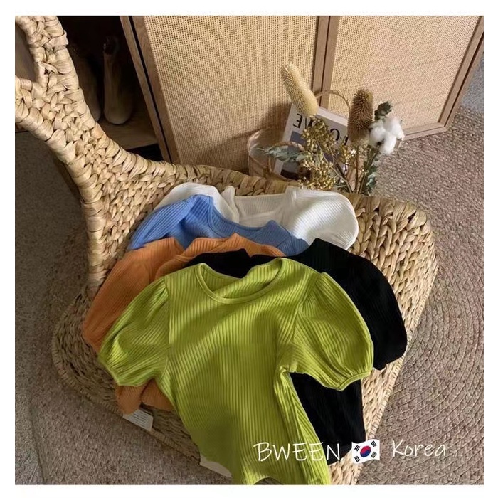 Blouse kids girl Korean baby girl short sleeve T-shirt puff sleeve shirt casual pure color shirt Baby Girl Clothes