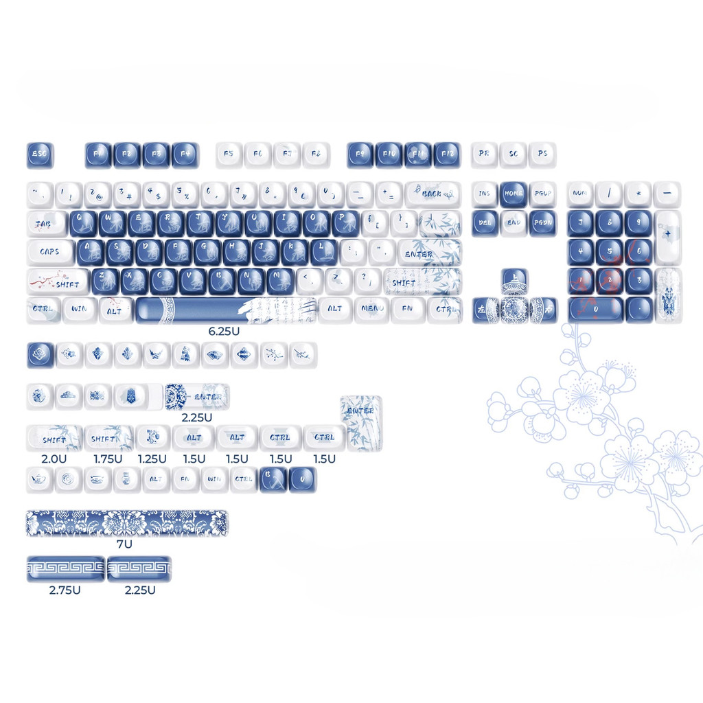 Blue And White Porcelain Keycaps 140 Keys MOA Profile PBT Five-sided Dye Sublimation Porcelain Keycaps Wooting Aula F75 RK100 White Blue Keycaps