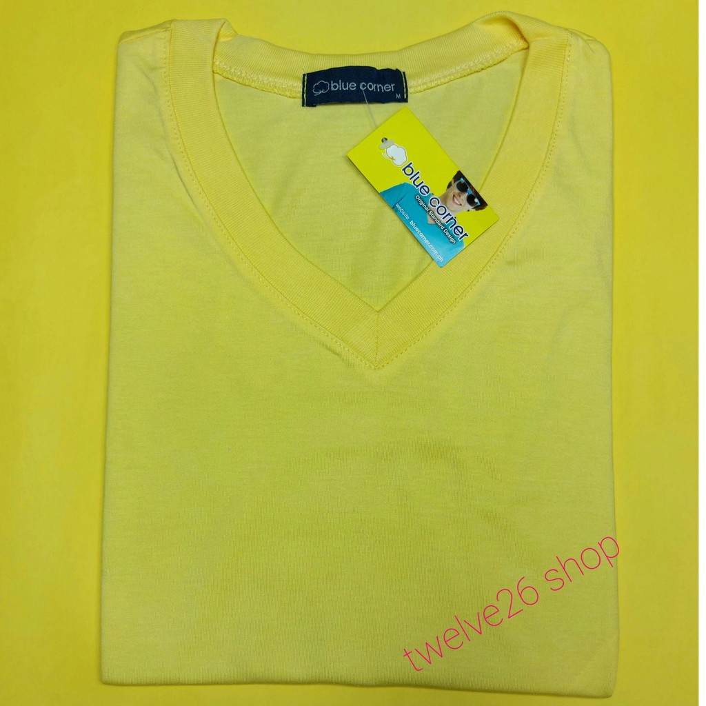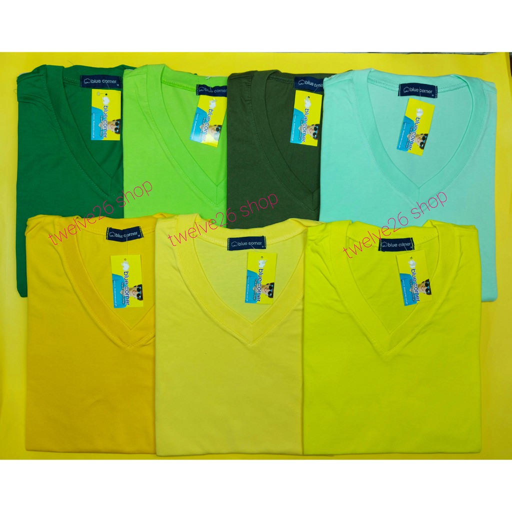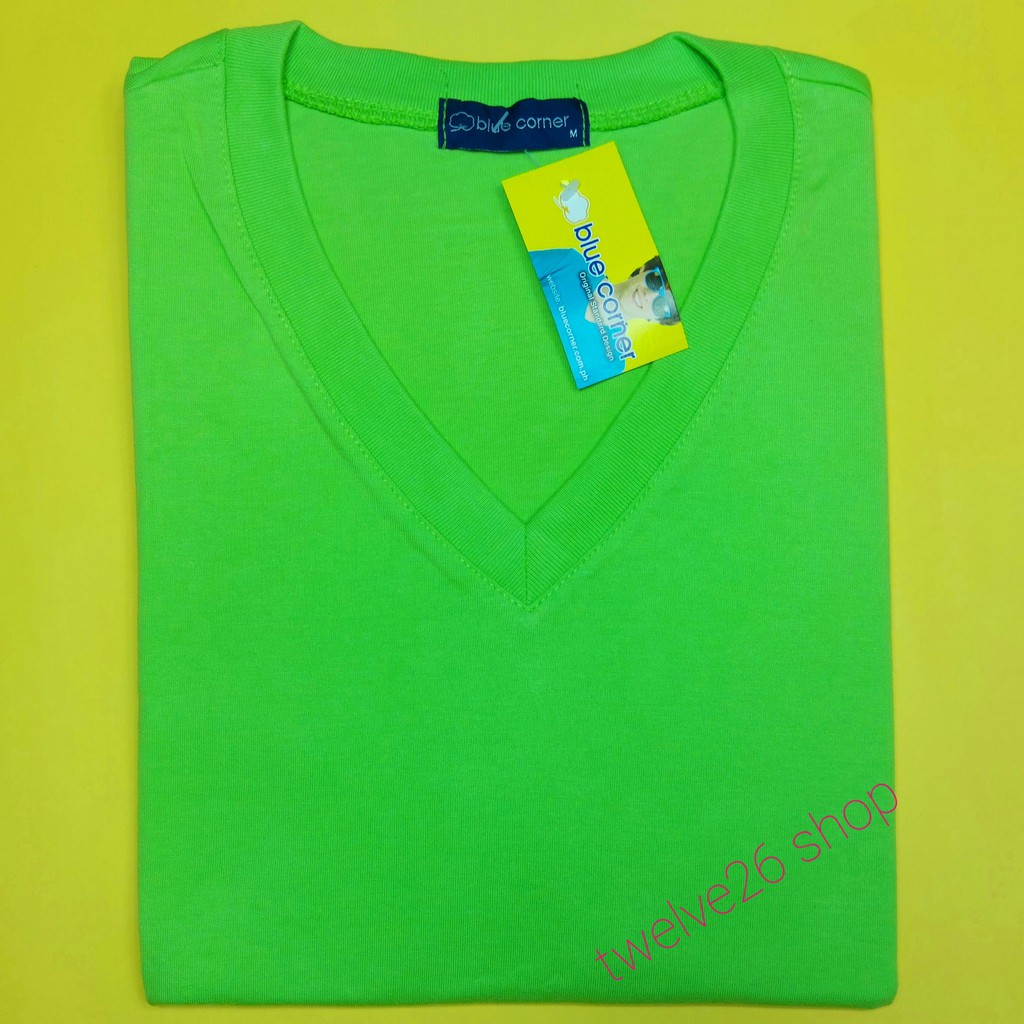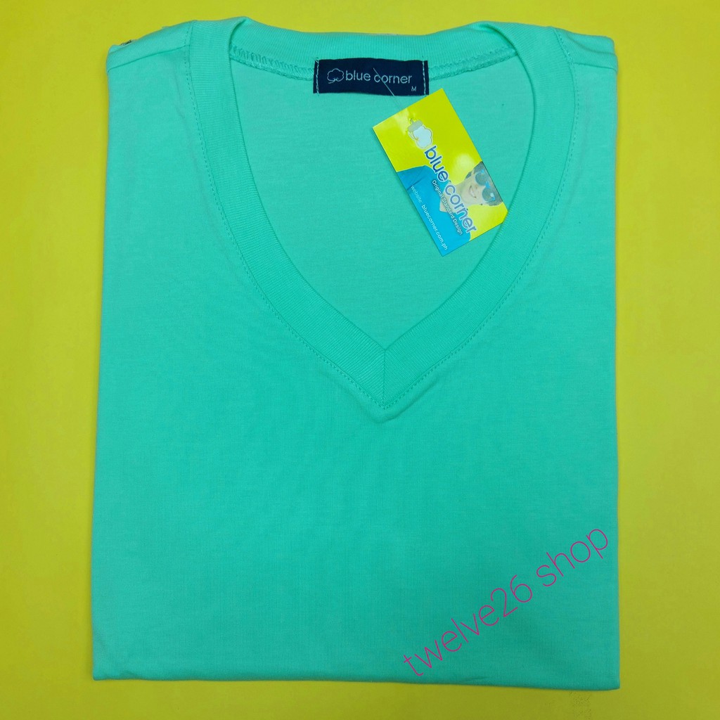 Blue Corner V Neck T Shirt Unisex Cotton Adult Lemon Gold Corn Yellow Mint Emerald Lime Army Green