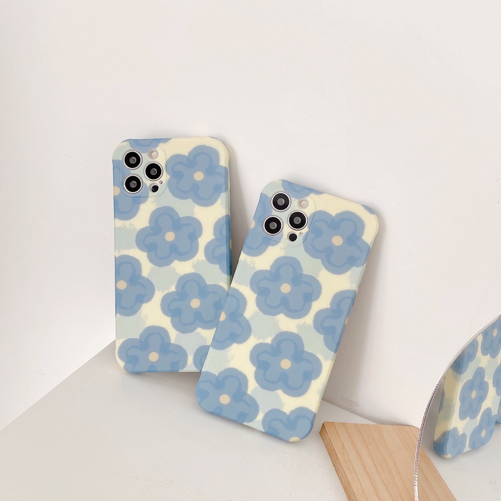 Blue Flowers Cover for iPhone Case Soft Texture for iPhone 14 13 12 11 Pro Plus Max X XR XS Max Case [Wodeke] Elegant Style Made in China