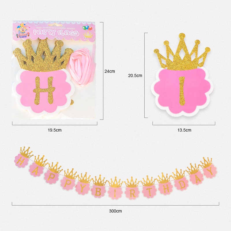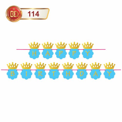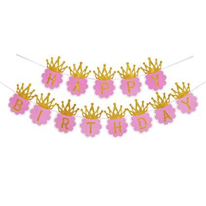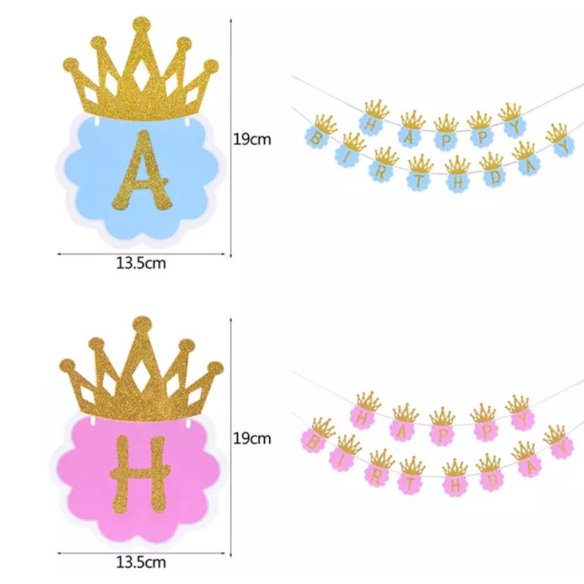 Blue Glitter Crown Happy Birthday Banner for Princess Prince King Queen - Ivypartyneeds