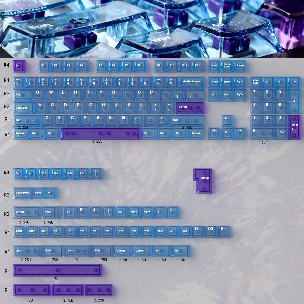 Blue PC Transparent Keycap/set 114Keys Cherry Profile Custom Keycaps for Gateron Cherry MX Switches 60% 65% 70% 75% 100% Mechanical Gaming Keyboard Keycap