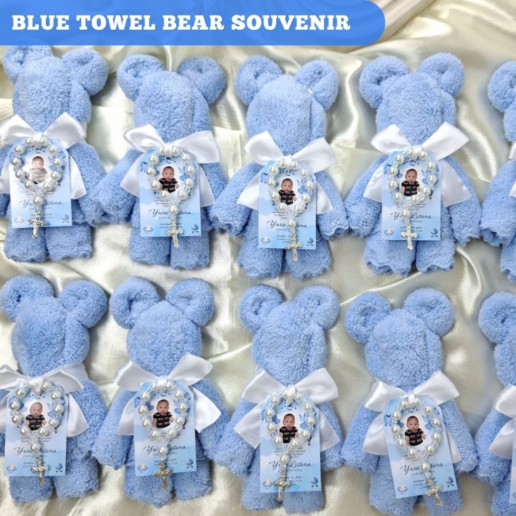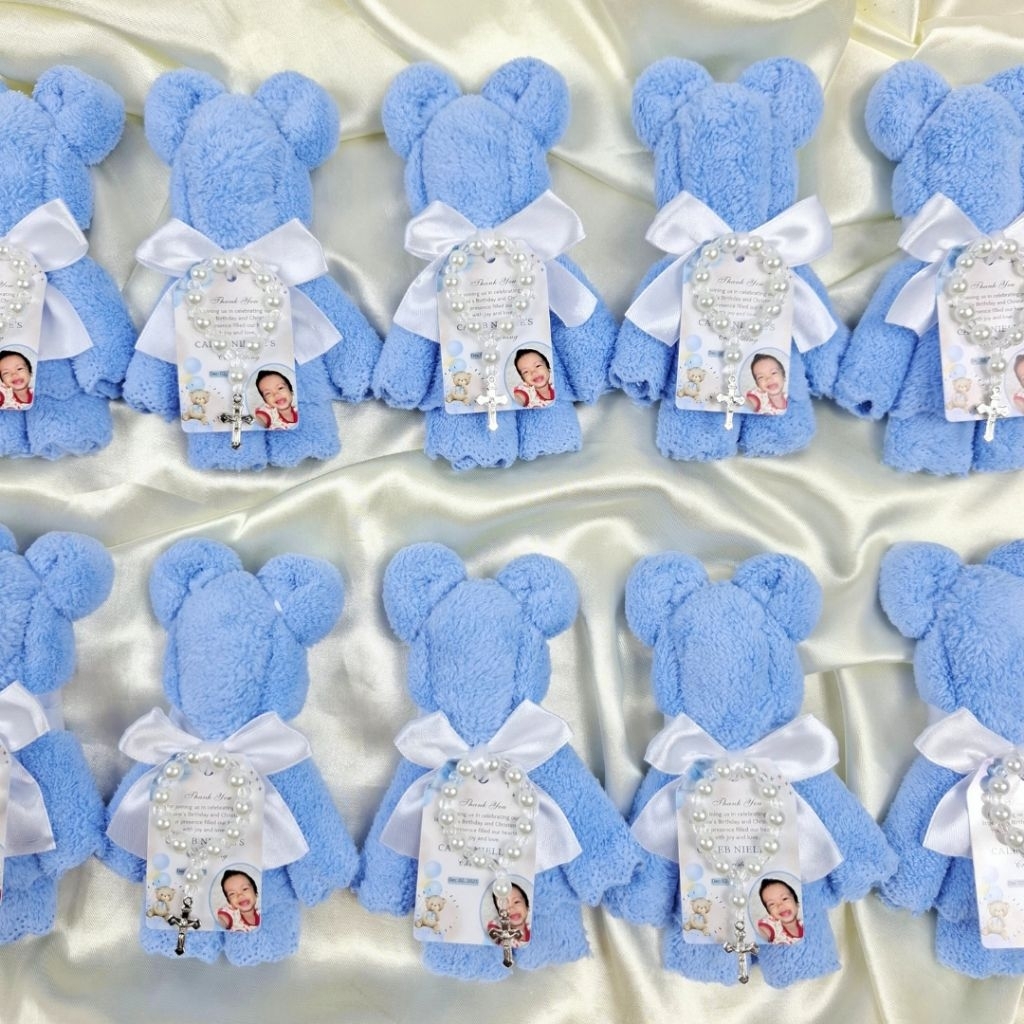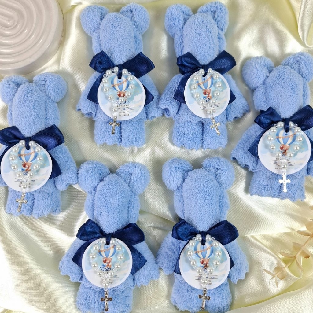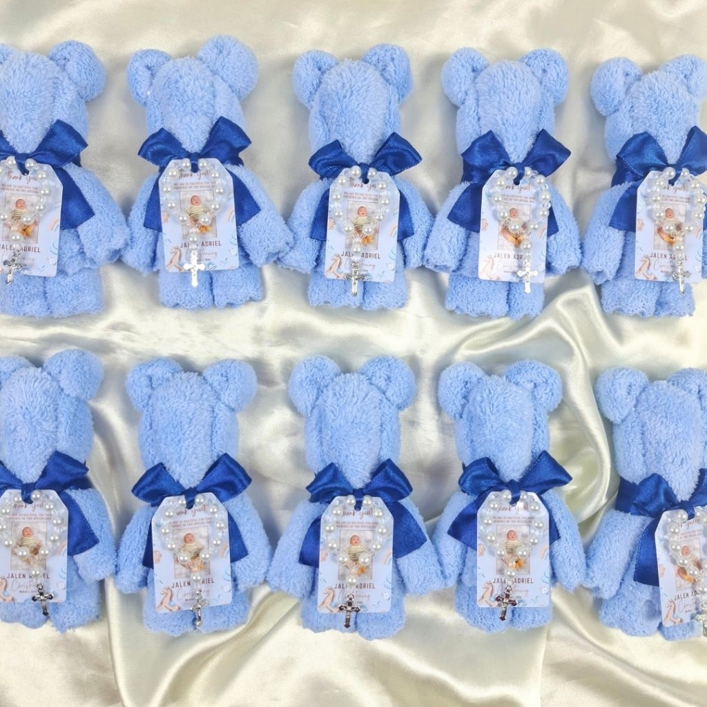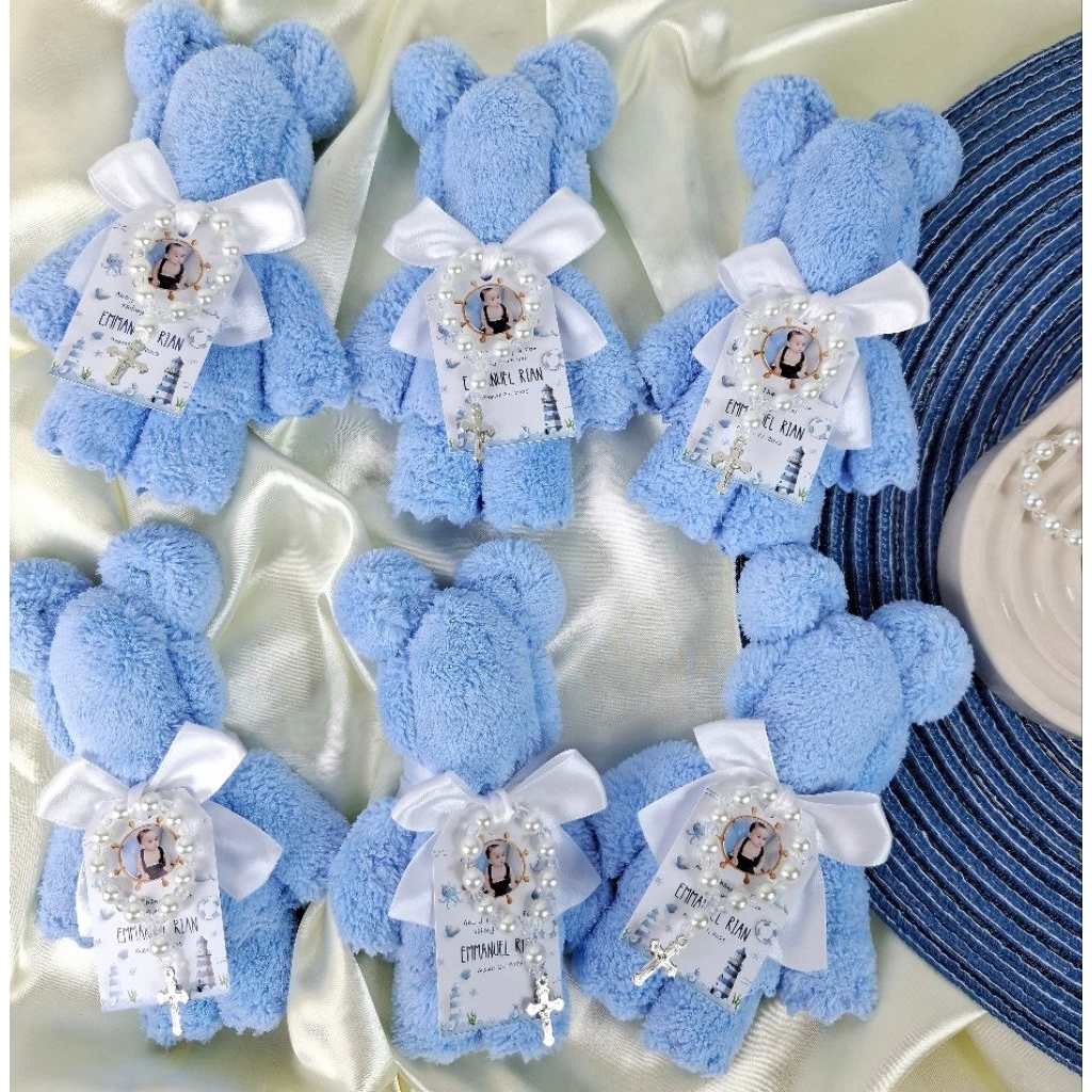 Blue Towel Bear Souvenir Useful and Unique for Baptism Christening Birthday Gender Reveal Customized