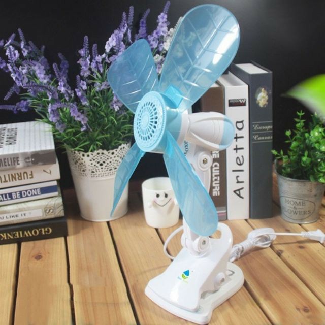 Blue Water Mini Home Electric Fan With Clip-4 Leaf